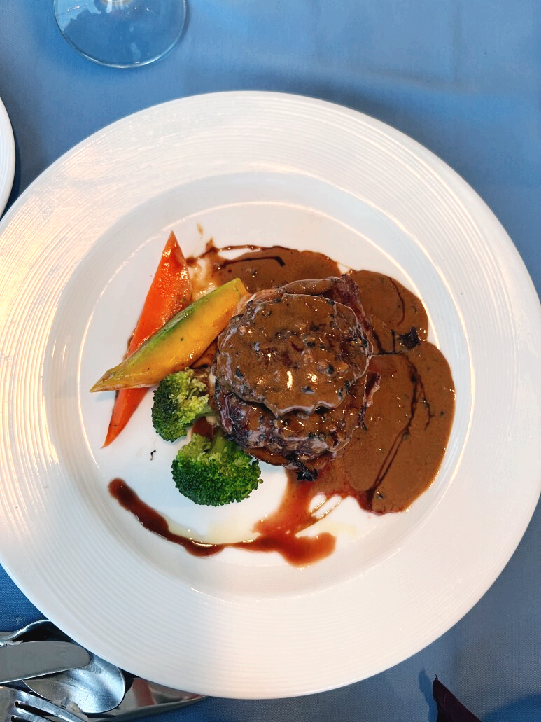 노을을 보기위해 야외 자리에 앉았으나 구름이 끼고 비가 조금 내려 식사중에 노을을 보진 못했어요.