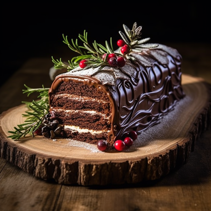 롤케잌으로 도전해볼만한 크리스마스 케이크, 초콜렛으로 장식하고 슈가파우더와 로즈마리, 각종 베리를 올리면 예쁠것 같아요.