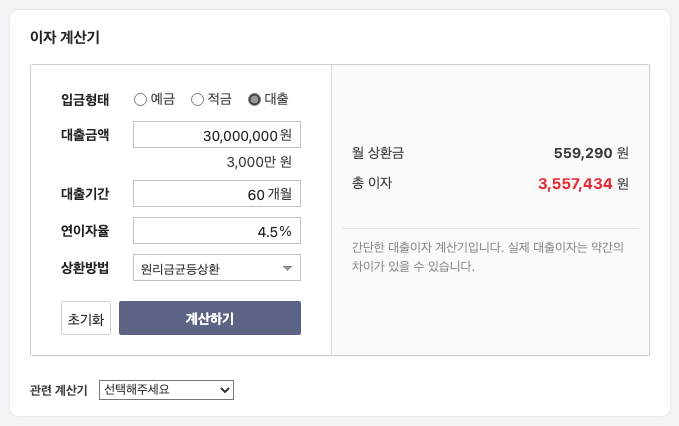 "대출 이자 계산기 2가지 추천"