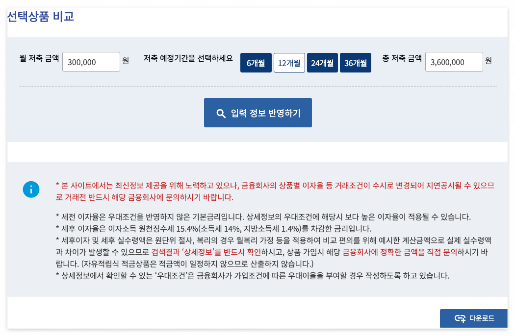 적금 비교는 예치 기간과 금액으로 이자를 예측하고