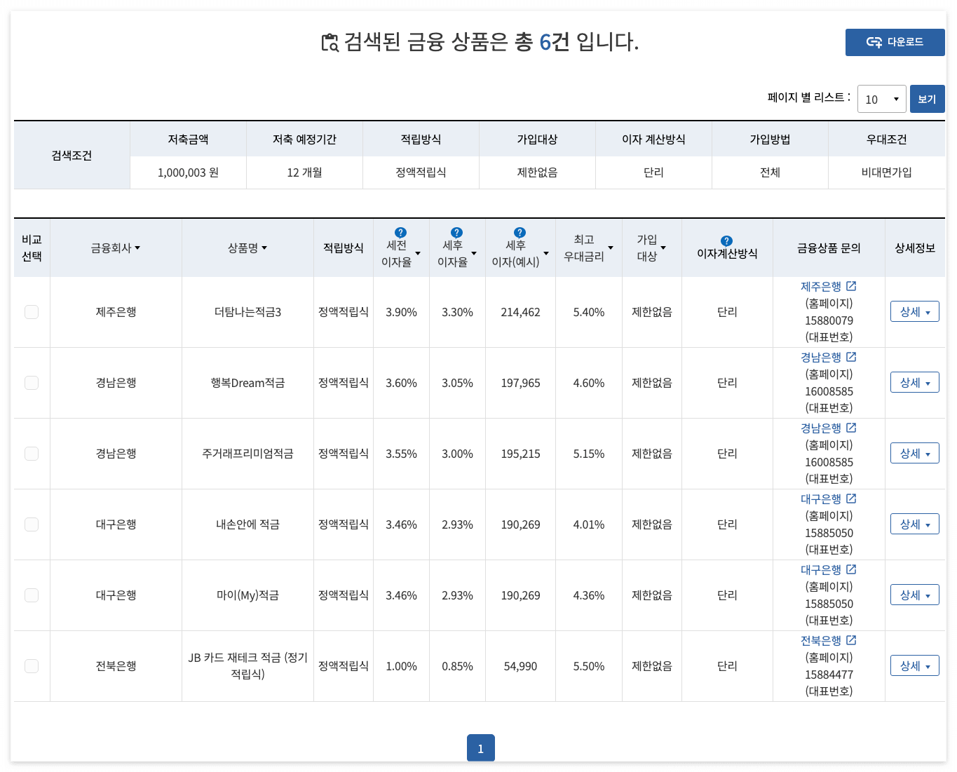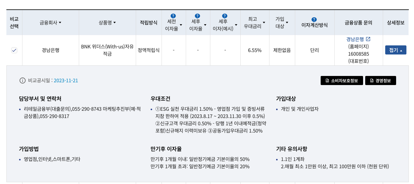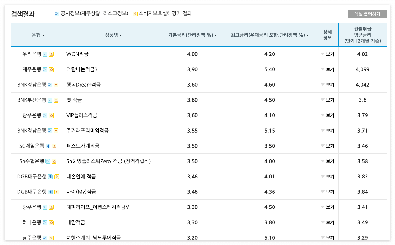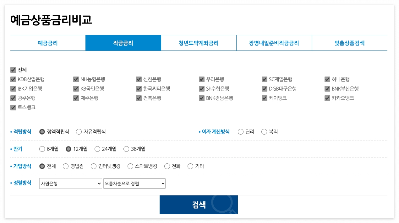 적금(목록) | 저축 | 금융감독원 금융상품통합비교공시 금융상품한눈에