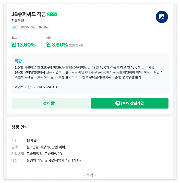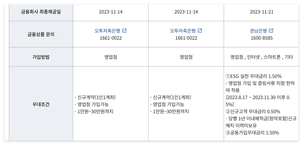 해당 은행명을 클릭하면 보다 자세한 정보를 확인 할 수 있으니 상품안내문을 확인하시면 되요.