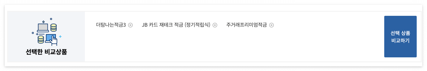 조건에 맞는 상품을 선택해서 바로 바로 한눈에 비교할 수 있어 편리해요!