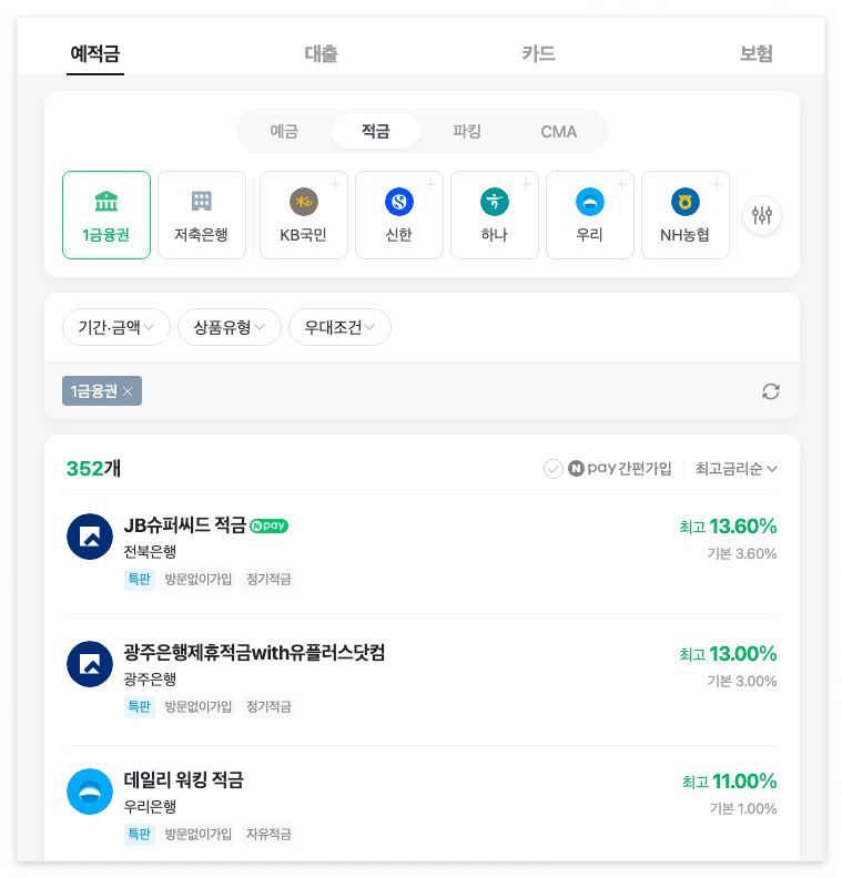 네이버에서 제공하는 예적금 비교사이트인데요.