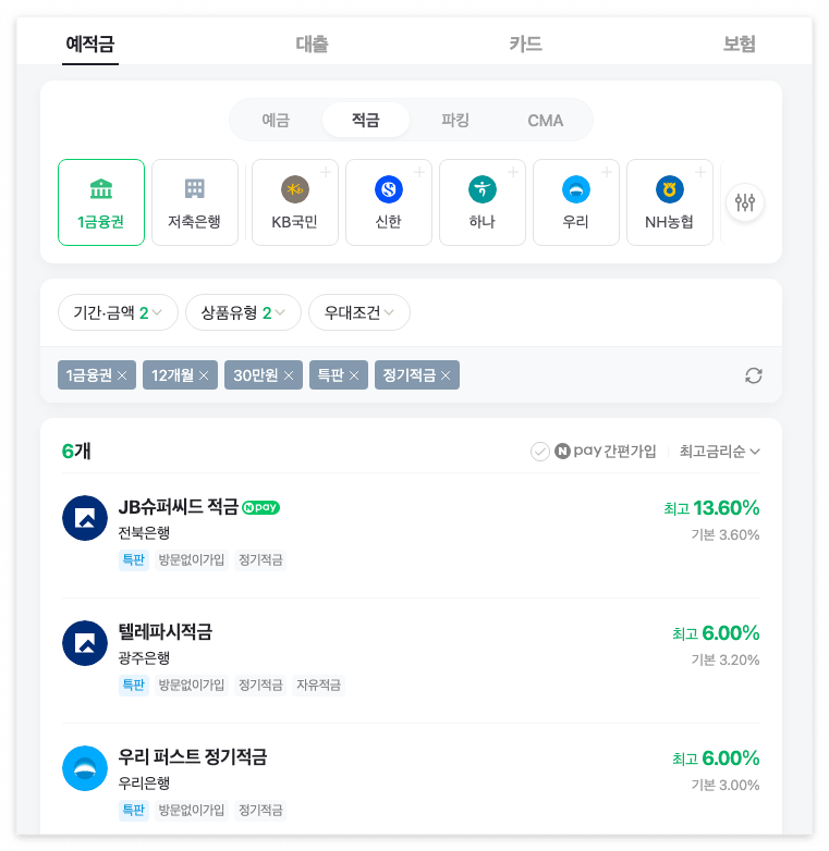 리스트에서 최고우대금리만 확인할 수 있어서 좀 아쉬운 부분이 있어요.