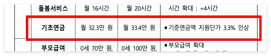 2024년 기초연금 지급액 (기준연금액 지원단가 3.3% 인상)