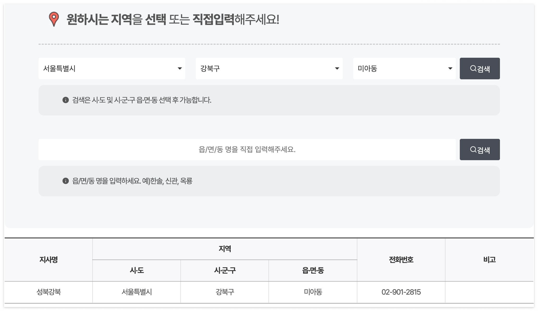 - 해당 지역을 선택하시면 주거지역과 가까운 곳에서 상담을 받으실 수 있어요.