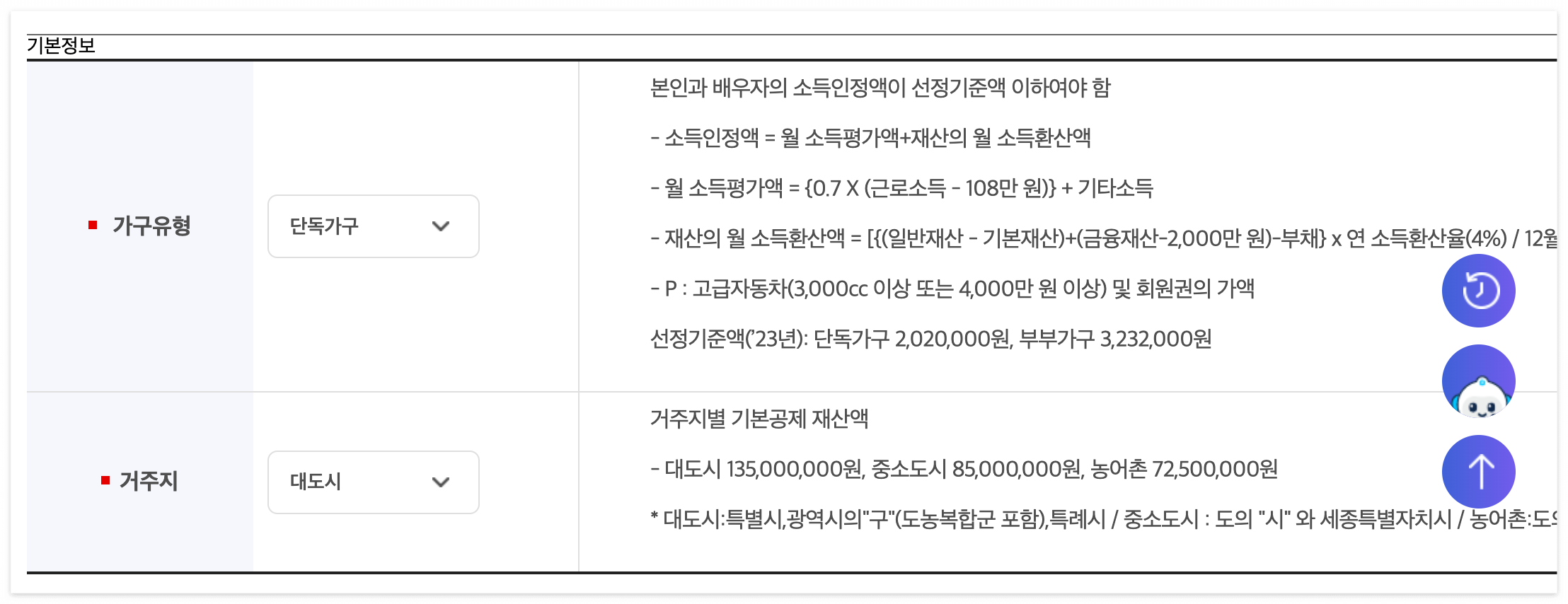 - 단독가구 2,130,000원, 부부가구 3,408,000원 이하 신청 가능(2024년 기준)