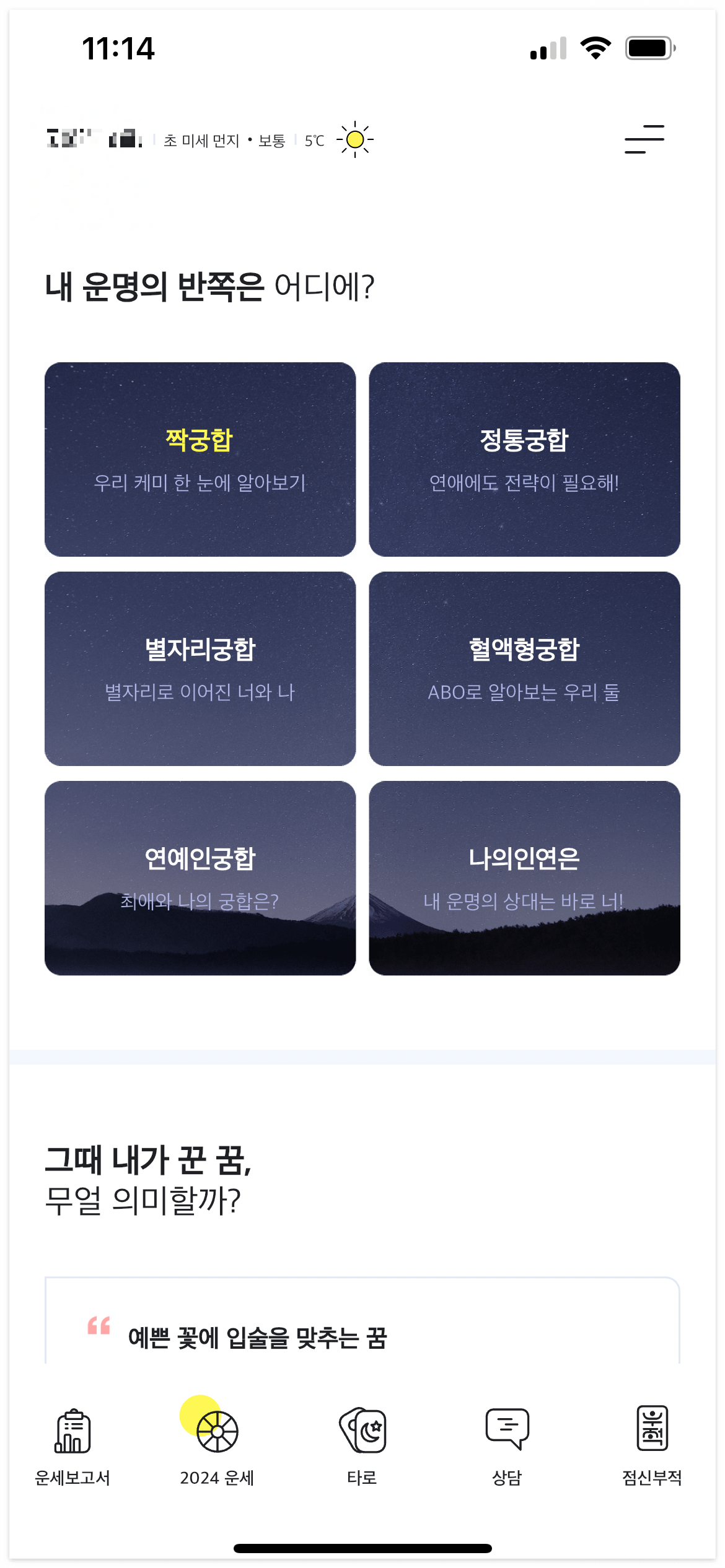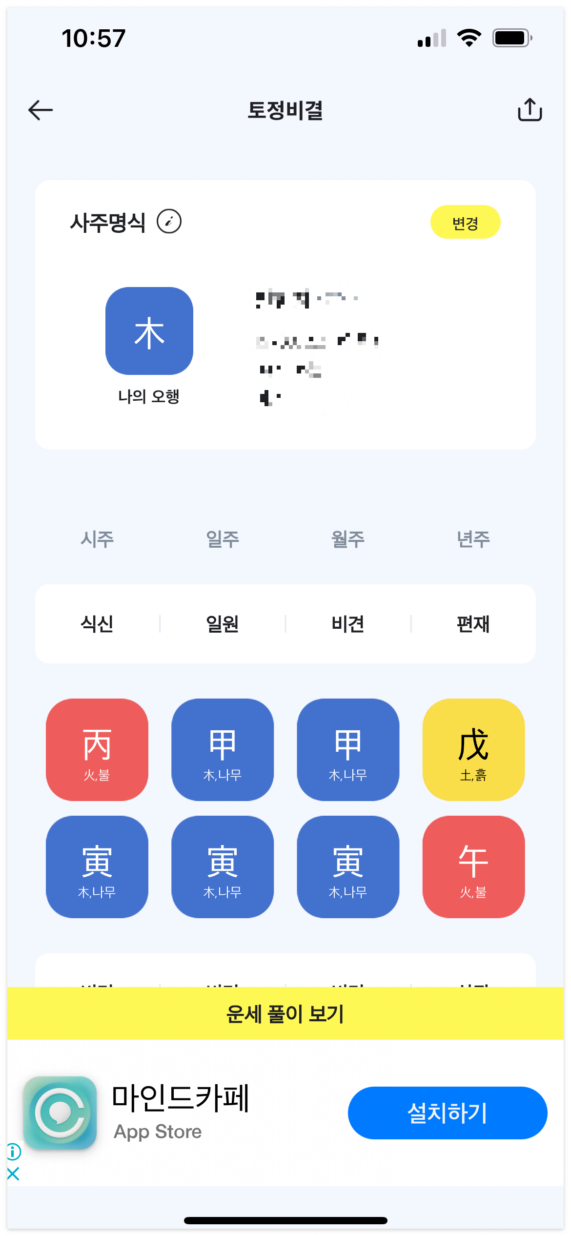 다운로드 받고 들어가시면 이렇게 신년운세, 토정비결, 사주, 궁합 등 다양한 서비스를 이용하실 수 있어요.