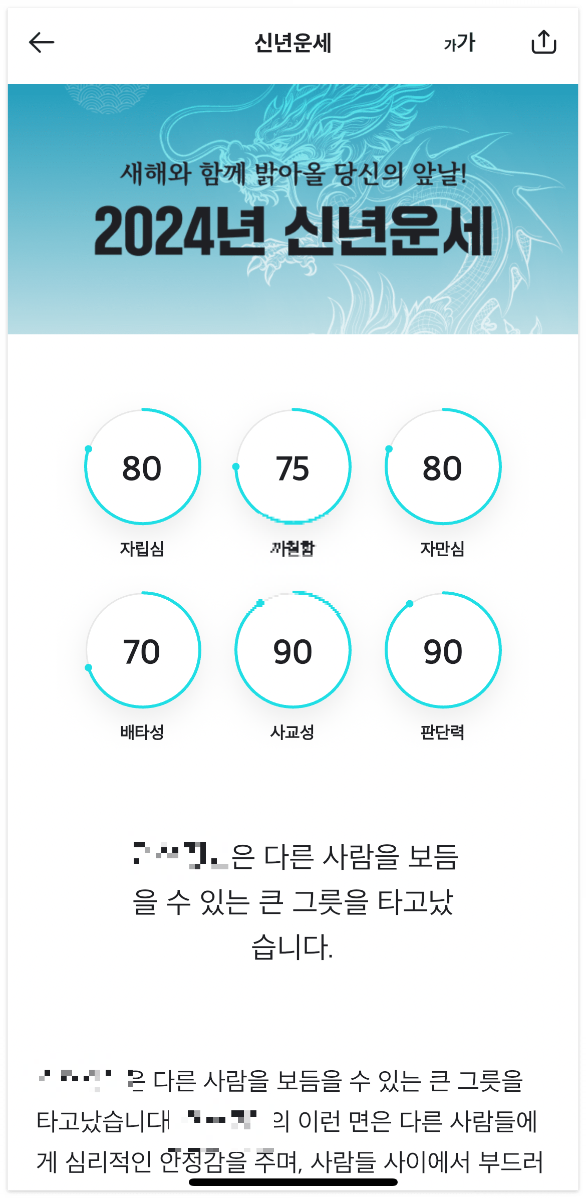 신년운세를 보기 자신의 특징이 6가지로 보여지네요.