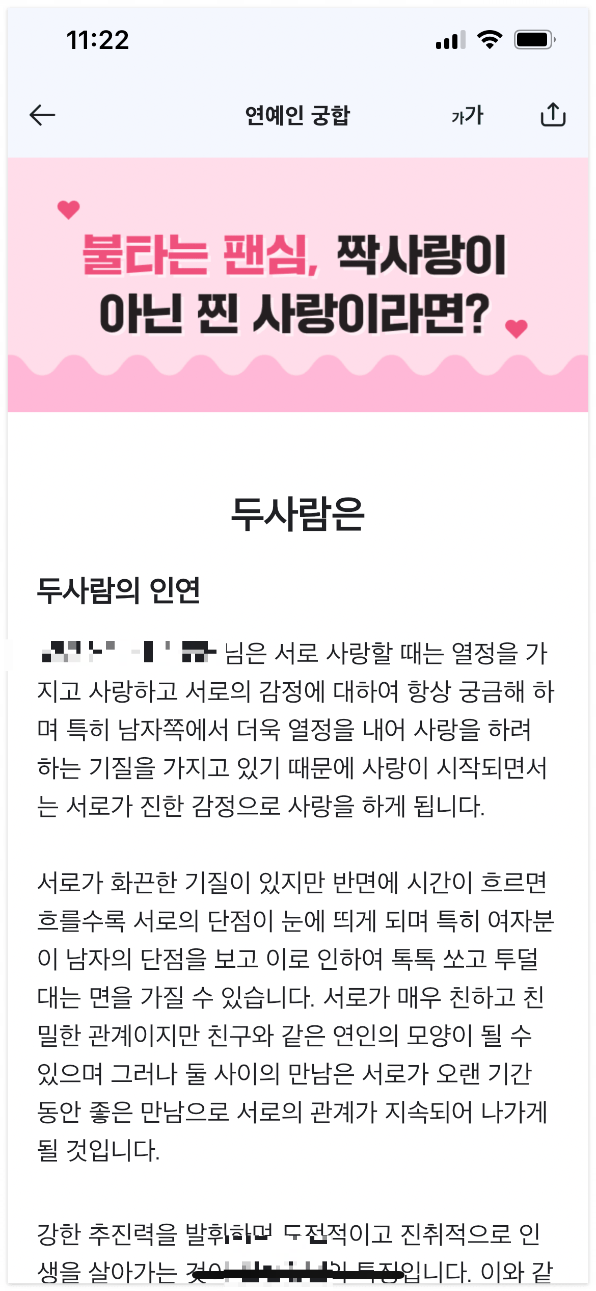 무료 궁합보기, 내가 좋아하는 연예인 궁합까지~