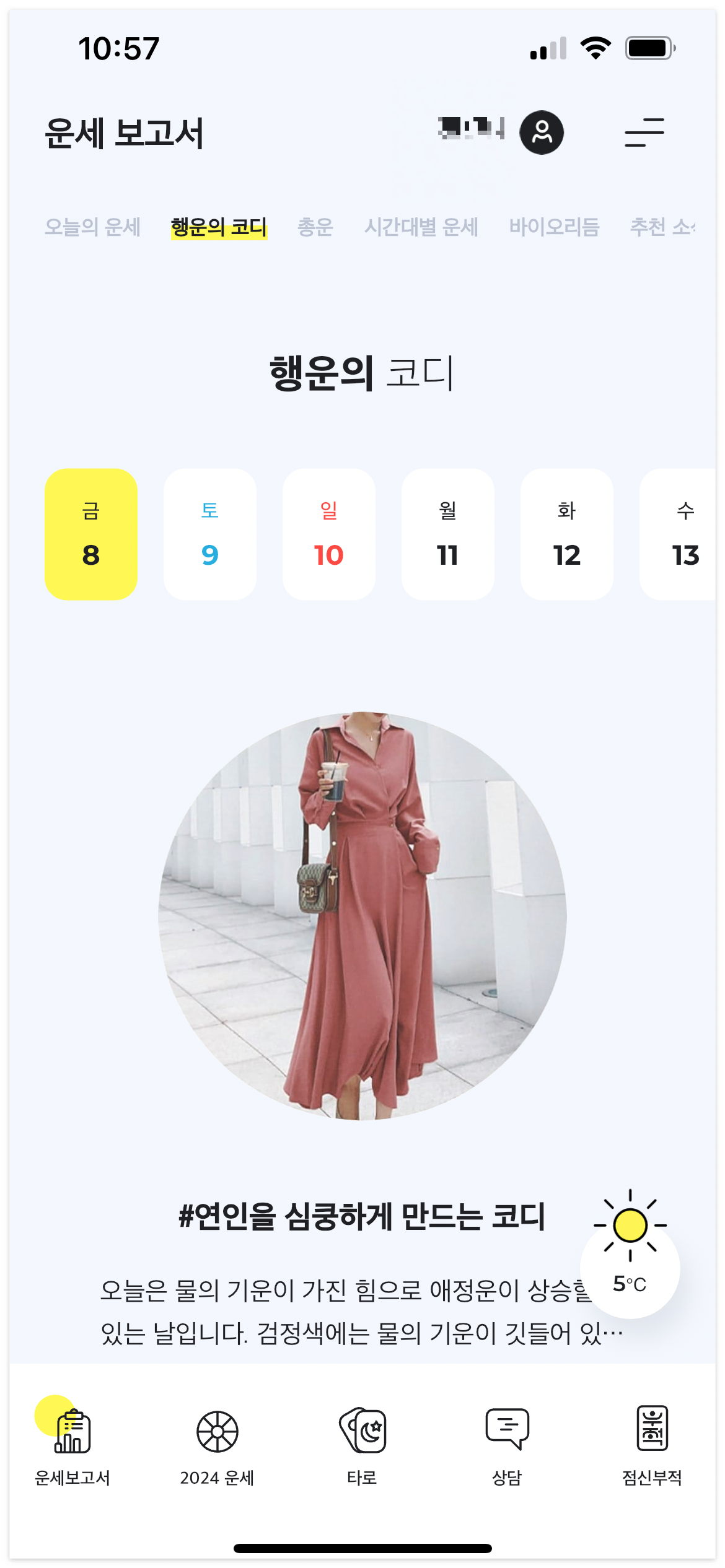 매일매일 알려주는 오늘의 운세와 코디정보까지~ 살펴보세요!