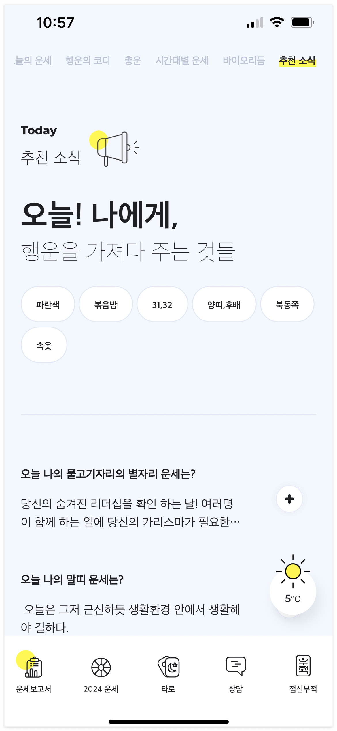 오늘의 운세, 행운의 코디, 행운을 가져다 주는 것들까지~