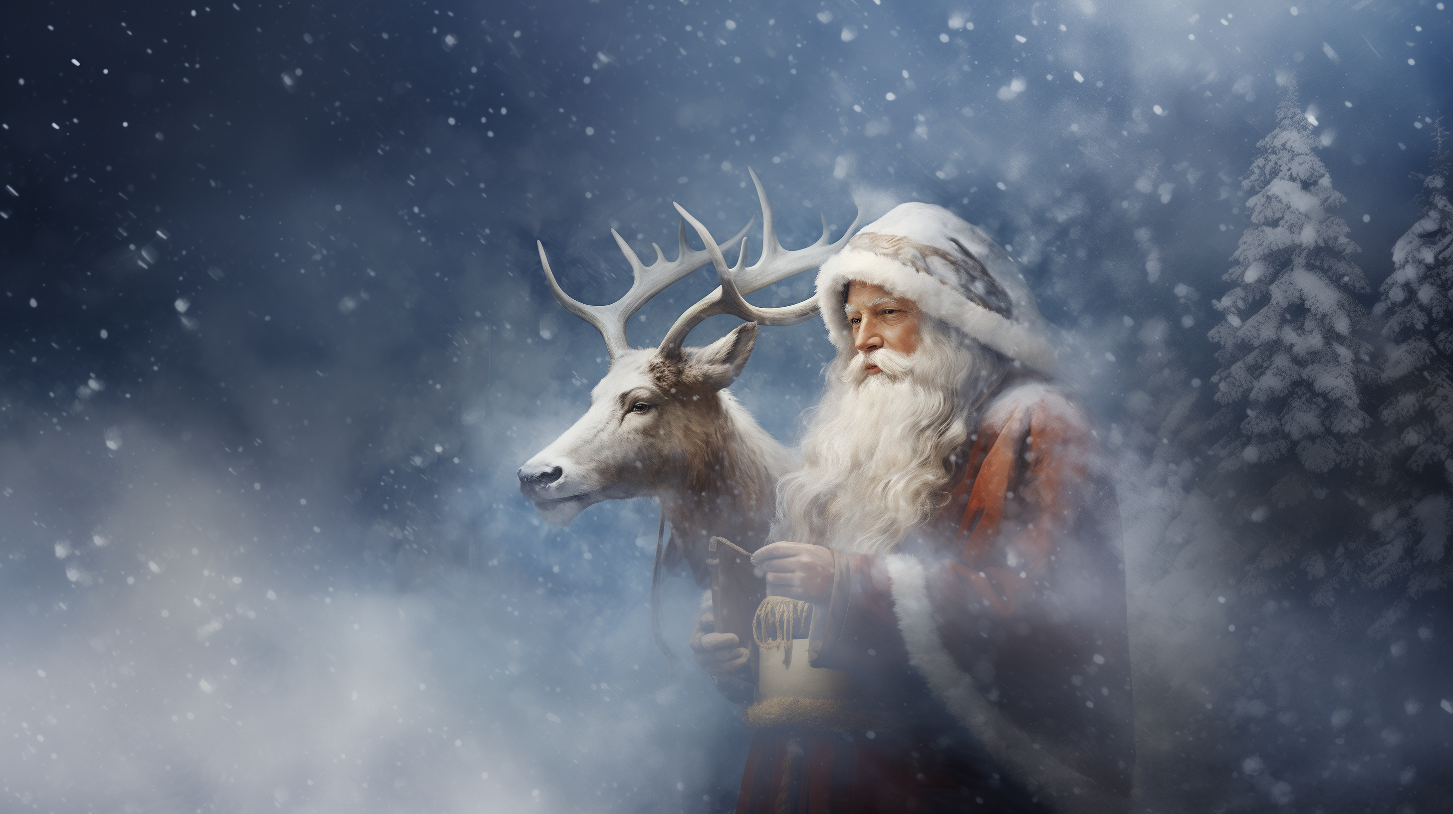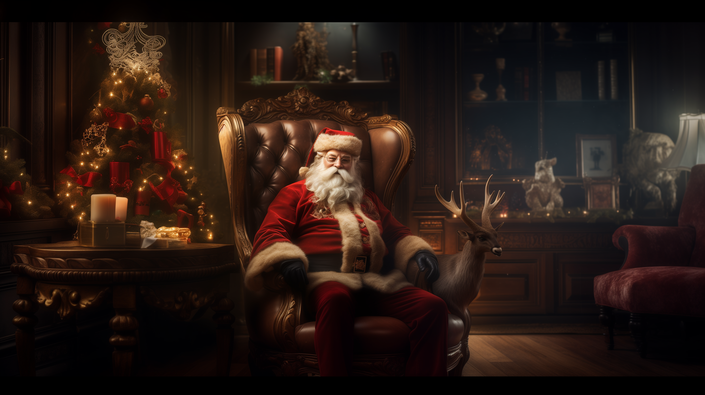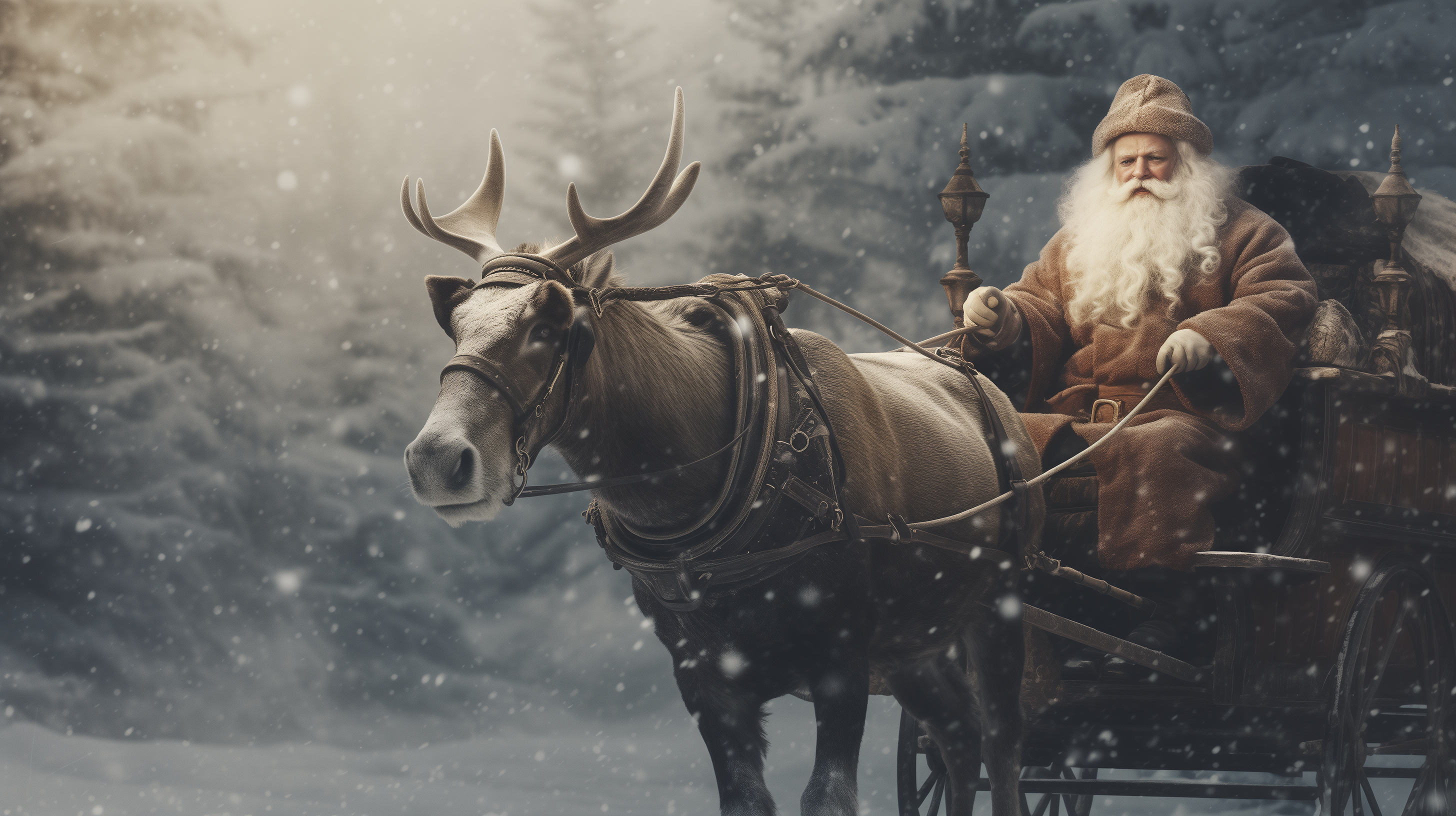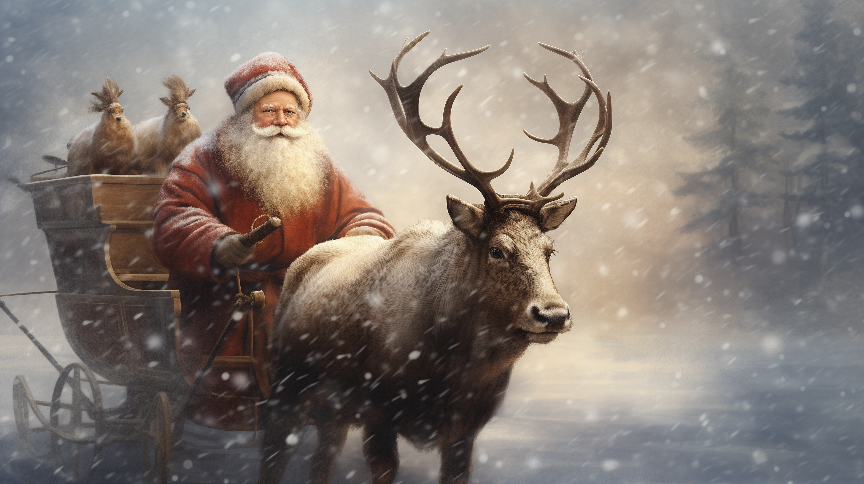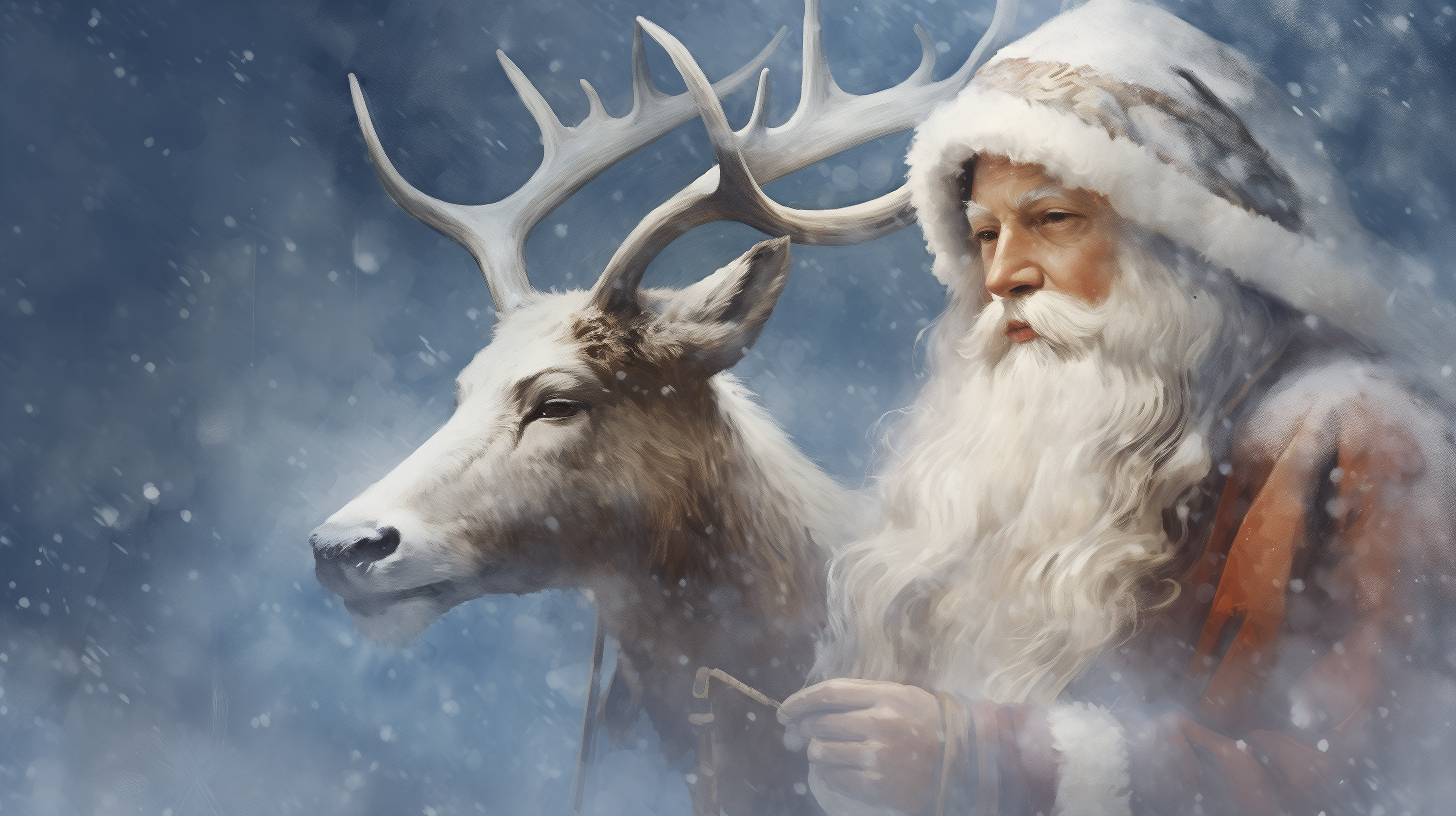 이번엔 레오나르도 다빈치 스타일의 빈티지한 느낌의 산타와 루돌프~