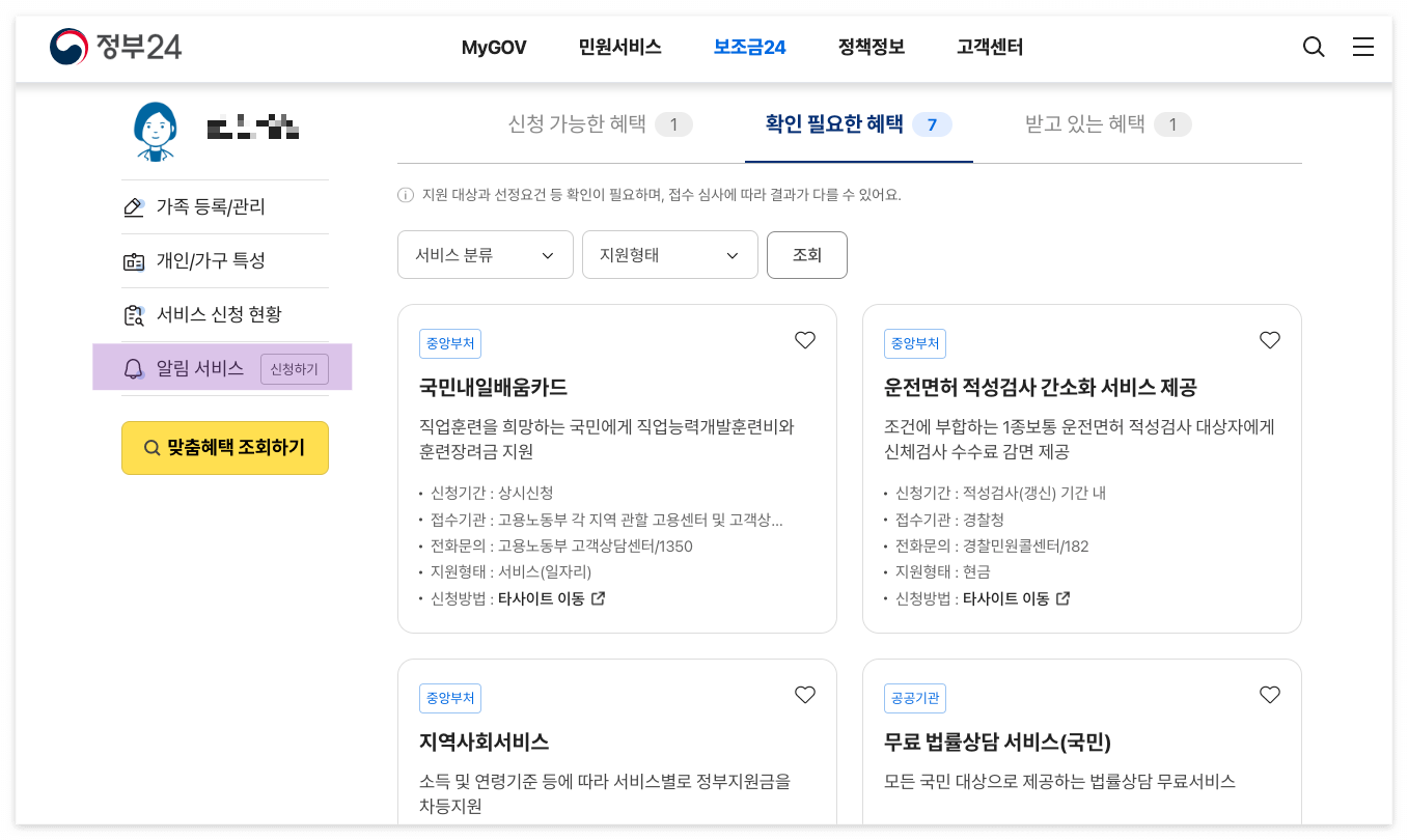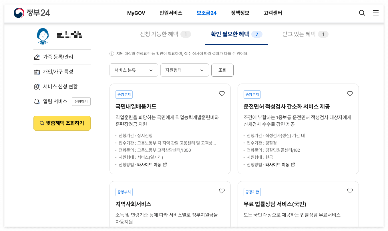 신청 가능한 혜택과 확인 필요한 혜택, 받고 있는 혜택을 확인하고