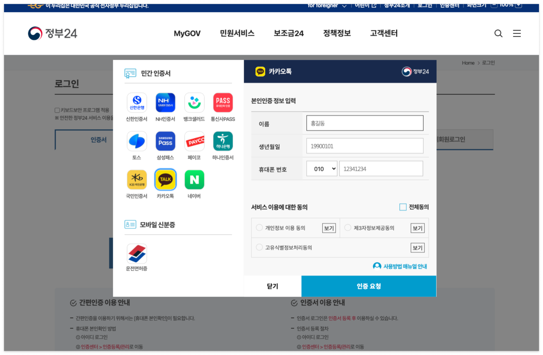 정부24 홈페이지에서 편한 방법으로 로그인해주세요!