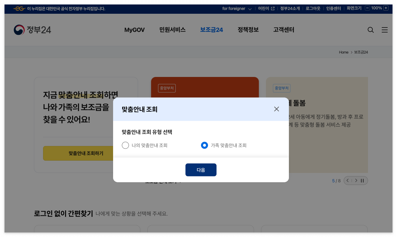 가족모두 확인하고 싶으시다면 가족 맞춤안내 조회를 클릭해주세요!