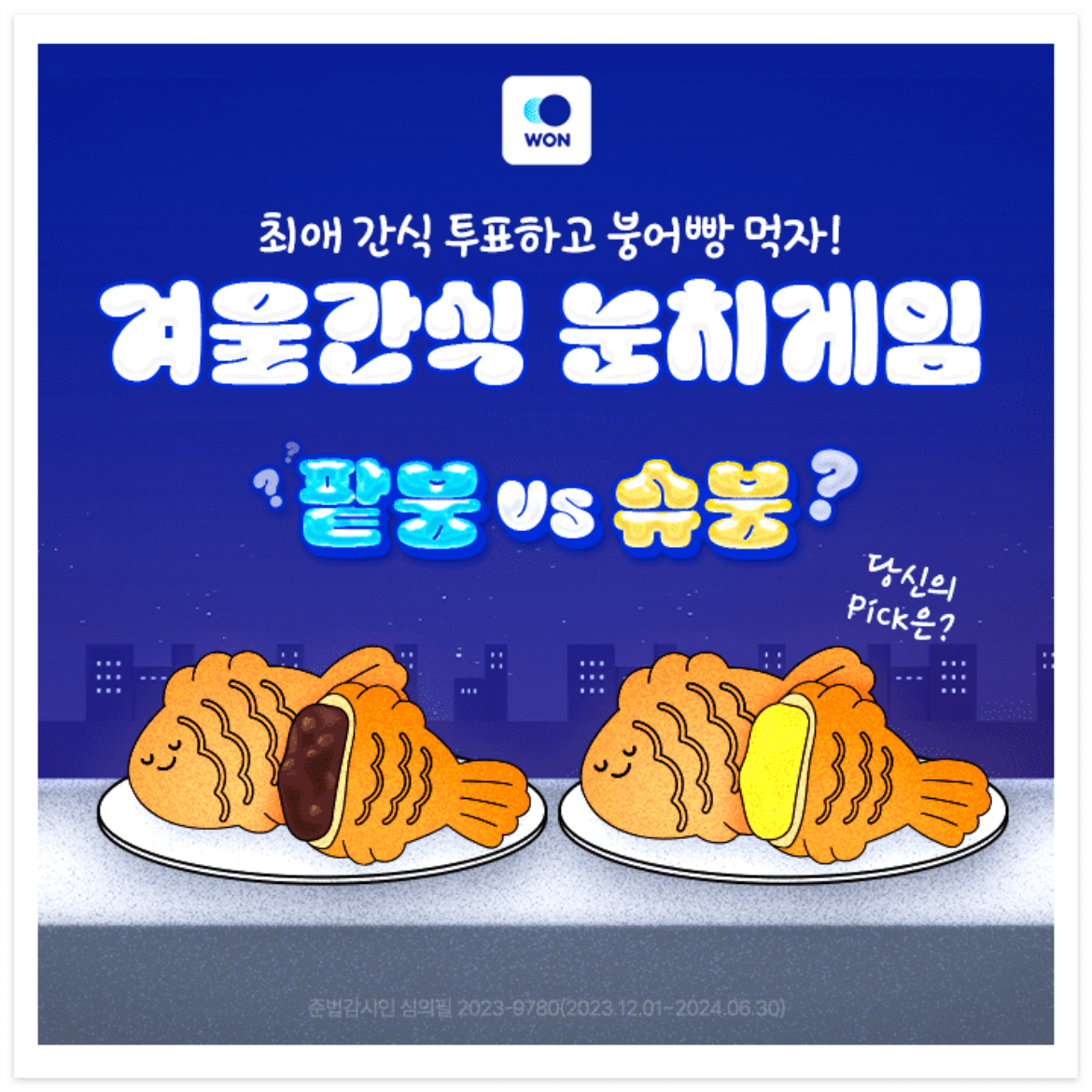 우리WON뱅킹 겨울간식 눈치게임에서는 팥붕어빵과 OOO붕어빵 중 하나를 선택할 수 있습니다.