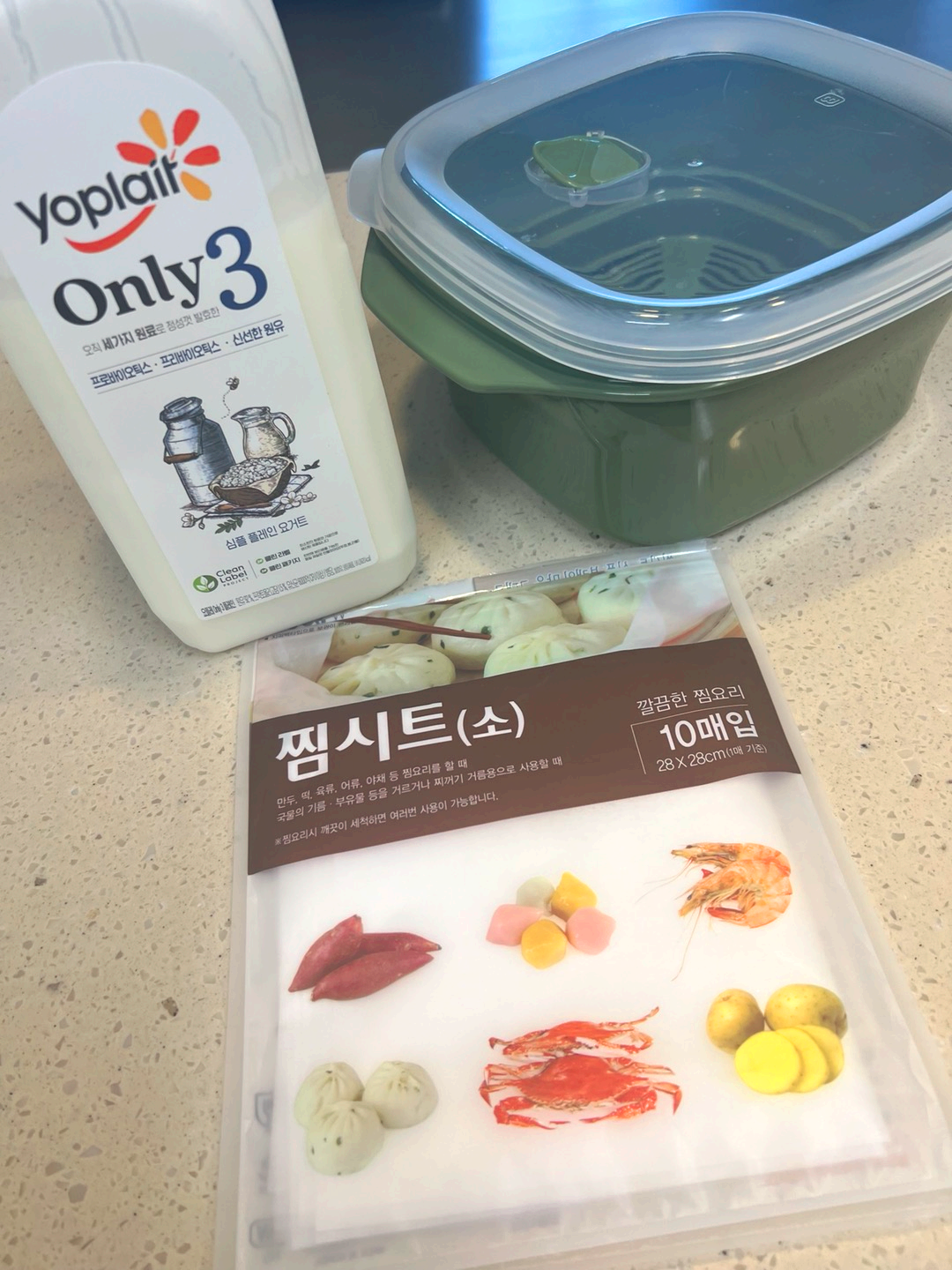 플레인요거트, 다이소 채받침 있는 반찬통, 다이소 찜시트(소)
