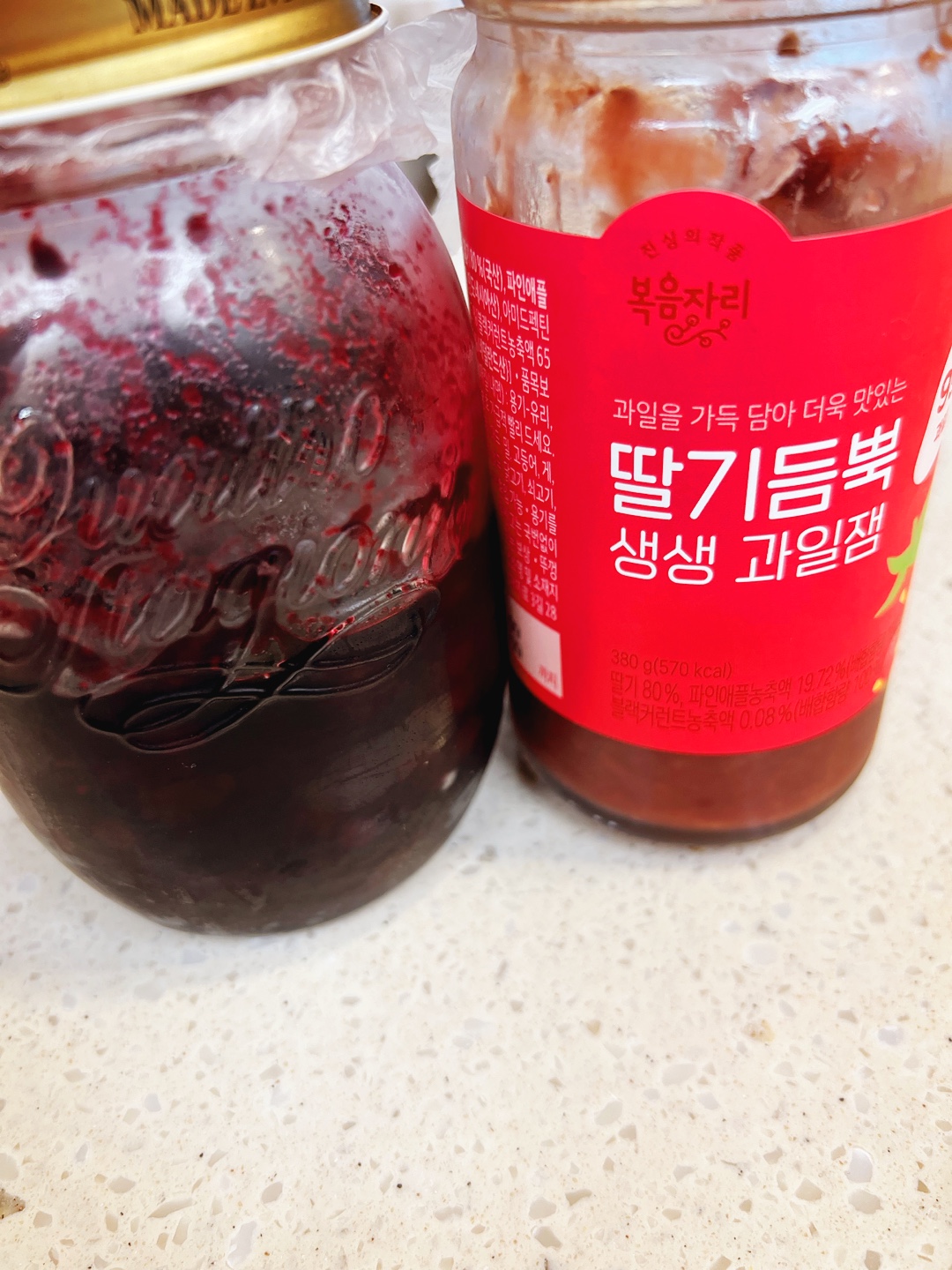 블루베리잼이 좀 뒷맛이 씁쓸해서 딸기잼도 함께 넣어 먹으면 달달해서 더 맛있어요.