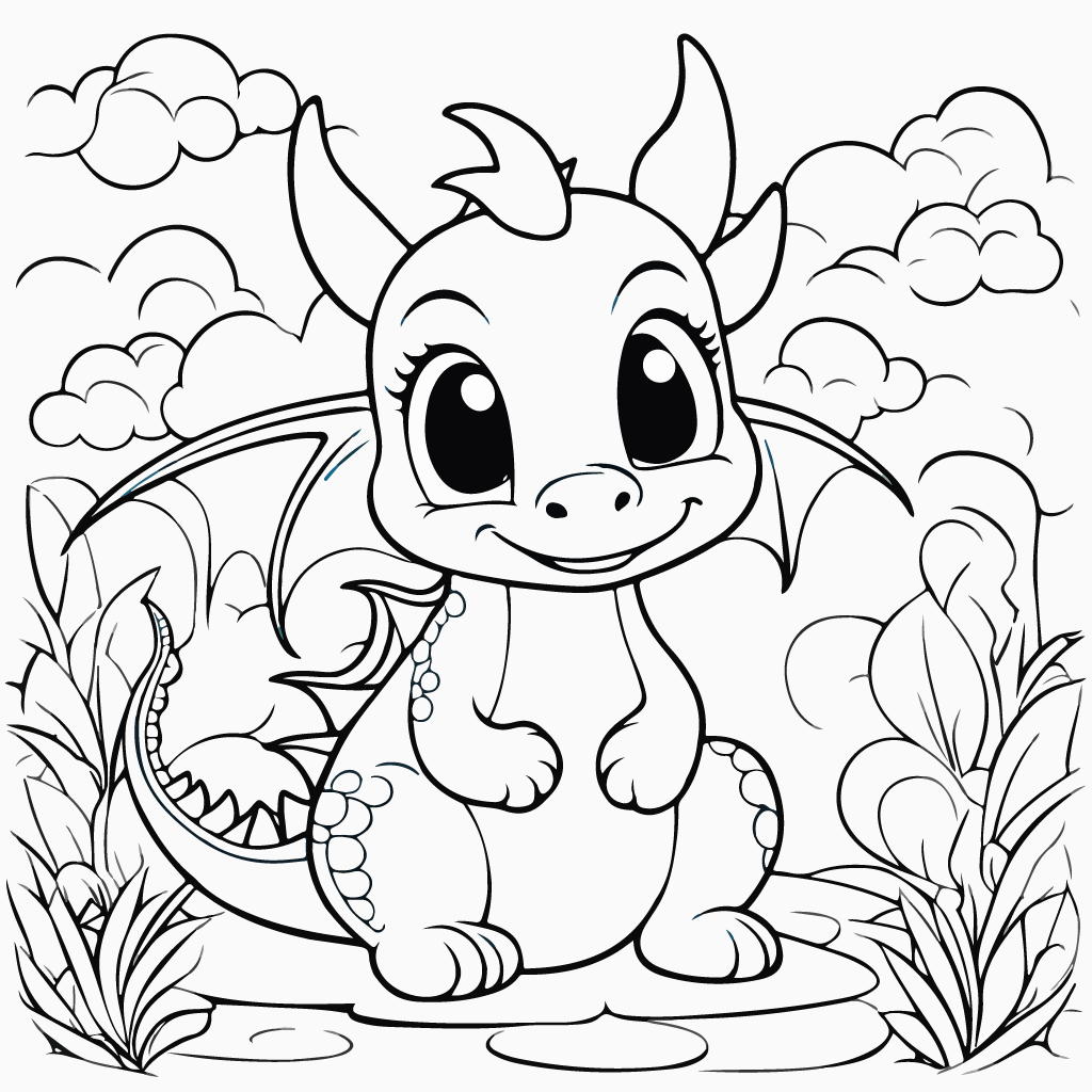 아이와 함께 귀여운 청룡 이미지를 색칠하면서
