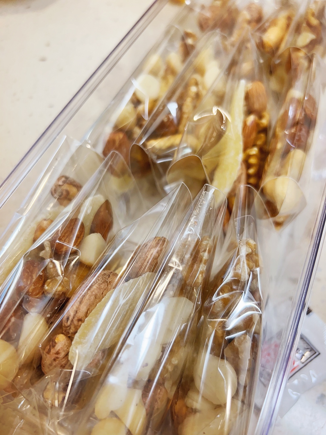 우선 마트에 가서 마음에 드는 견과류를 구매하고, 작은 1회용 비닐을 준비해요.