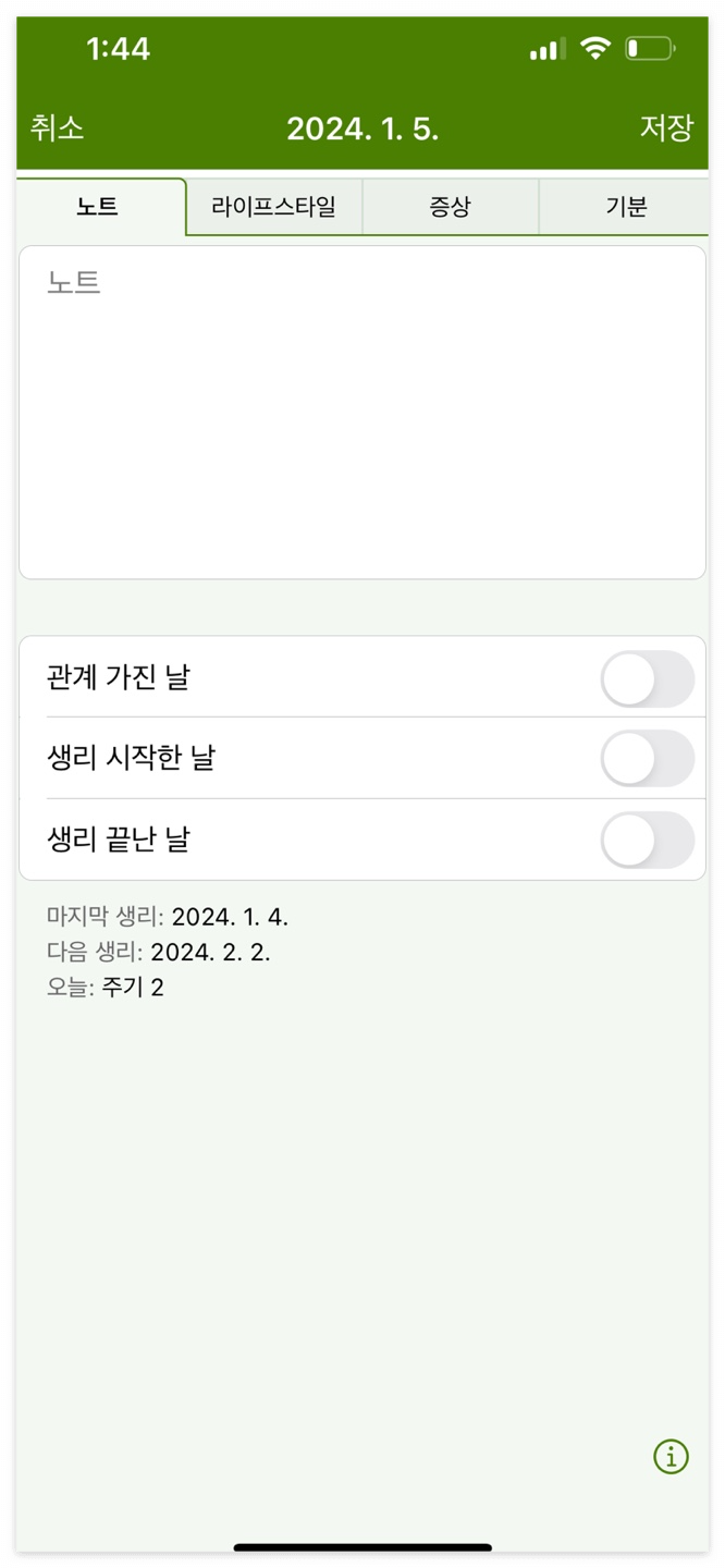 달력에 날짜를 적어놓아도 하루이틀 늦어지거나 당겨지는 경우가 있어 계산하기 쉽지 않아요.