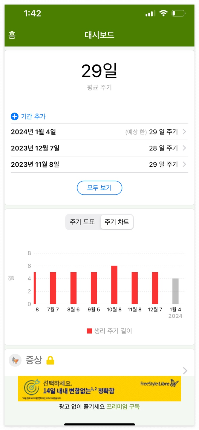 정확한 주기를 계산하기 위해서는 최소 3개월이나 6개월 정도 평균을 내는게 좋아요.