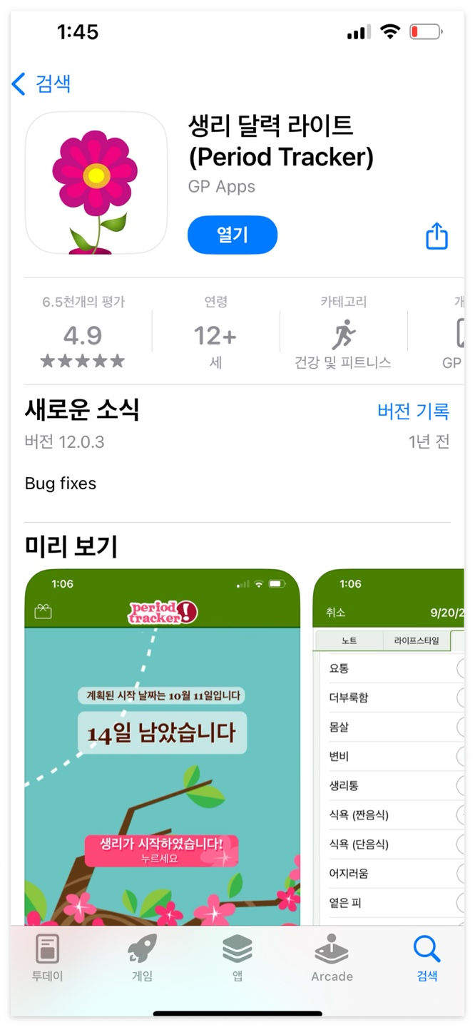어플 다운로드 화면에서 "생리달력라이트"를 검색해요!