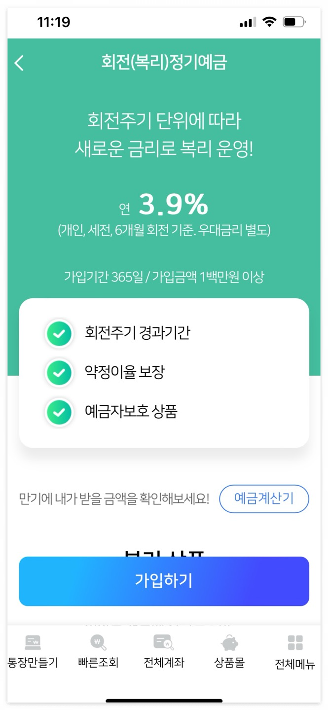 회전(복리)는 정기예금 상품이예요.