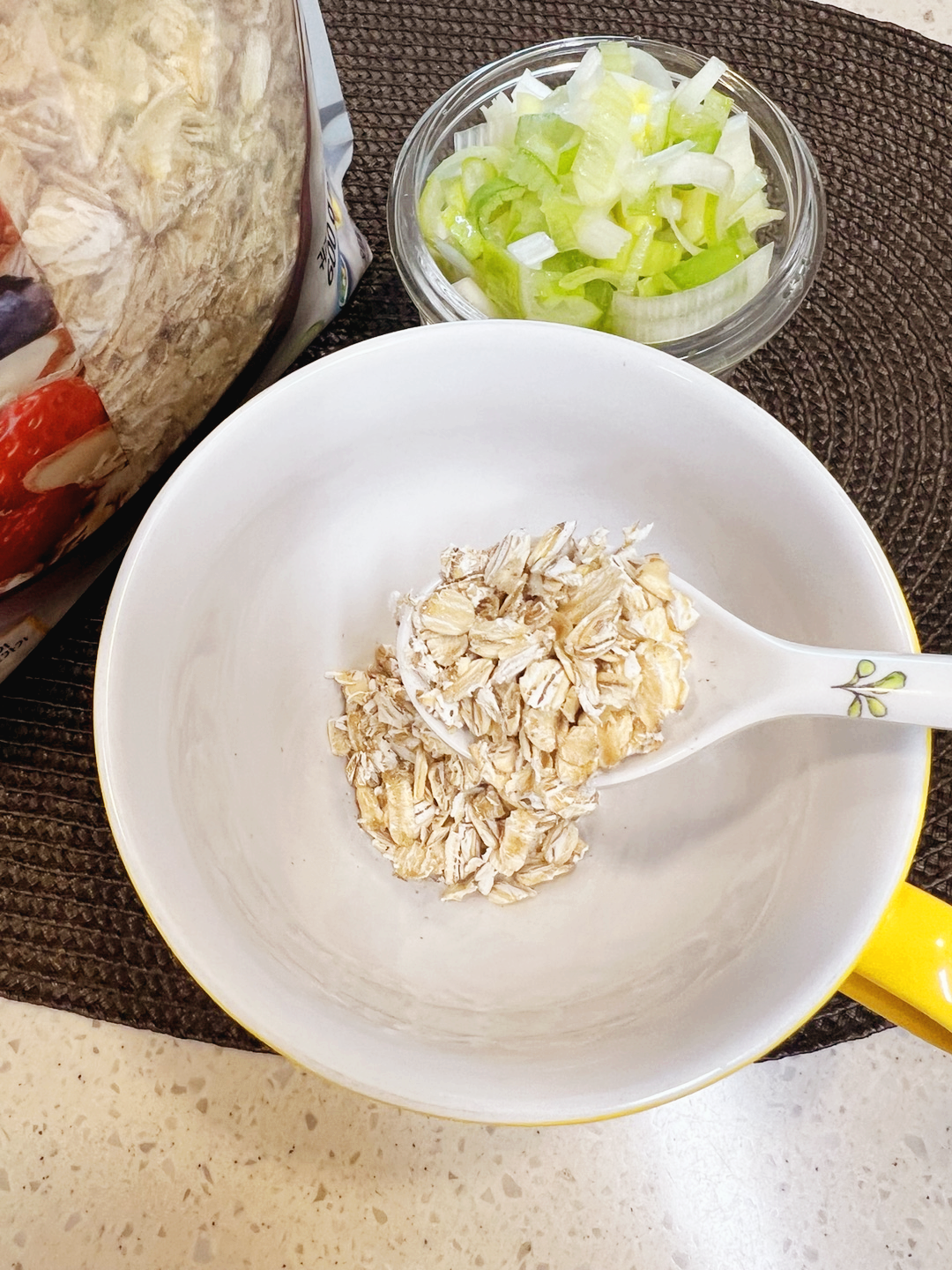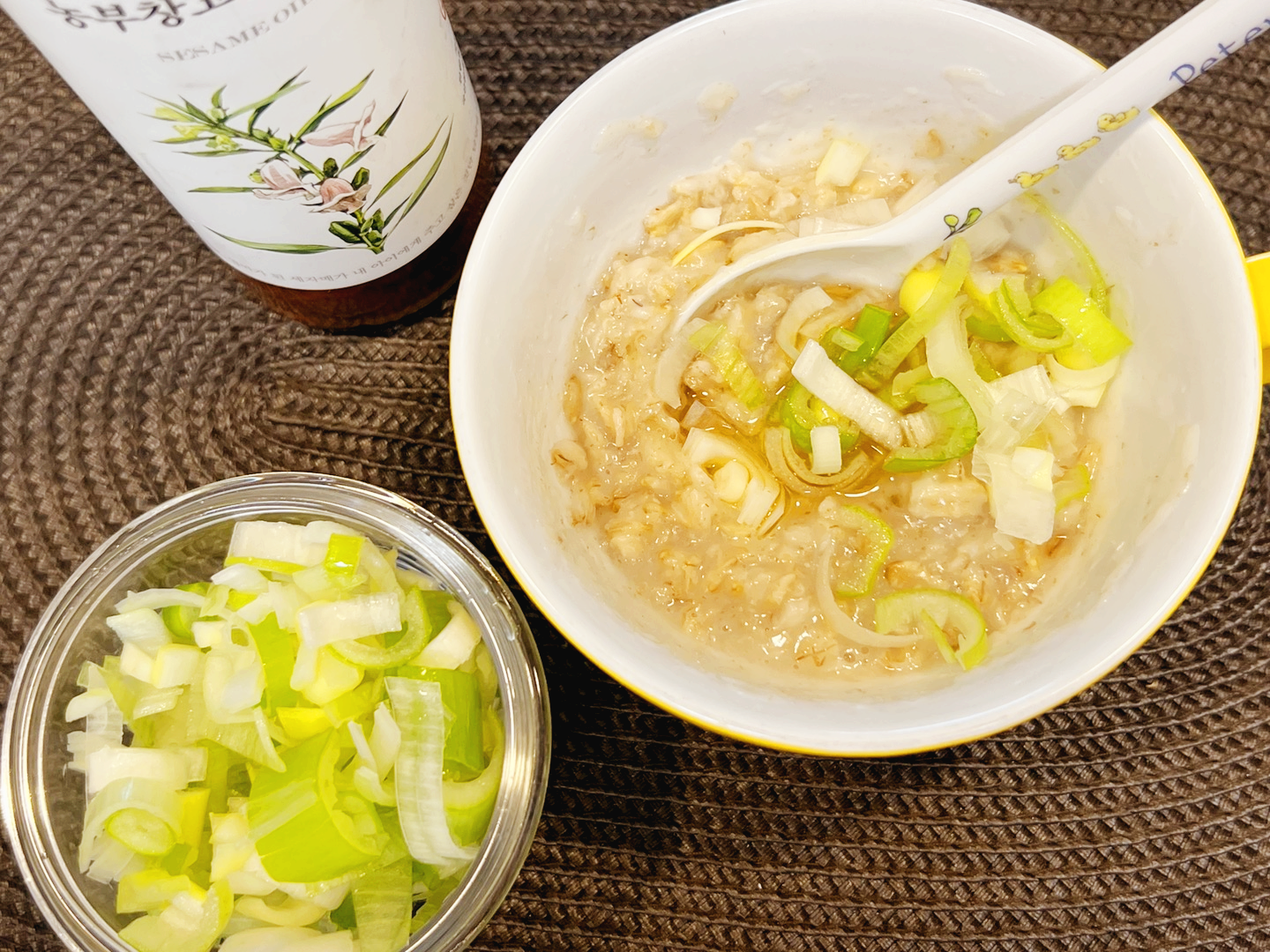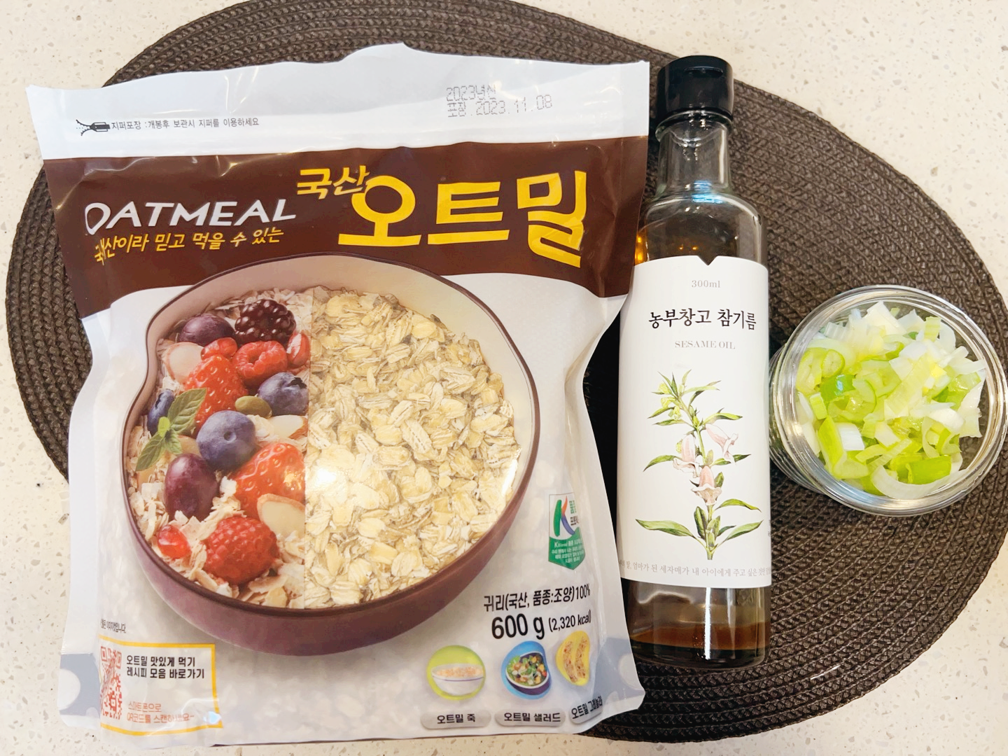 아삭아삭 씹히는 파와 오트밀의 고소함이 잘 어울리는 것 같아요.