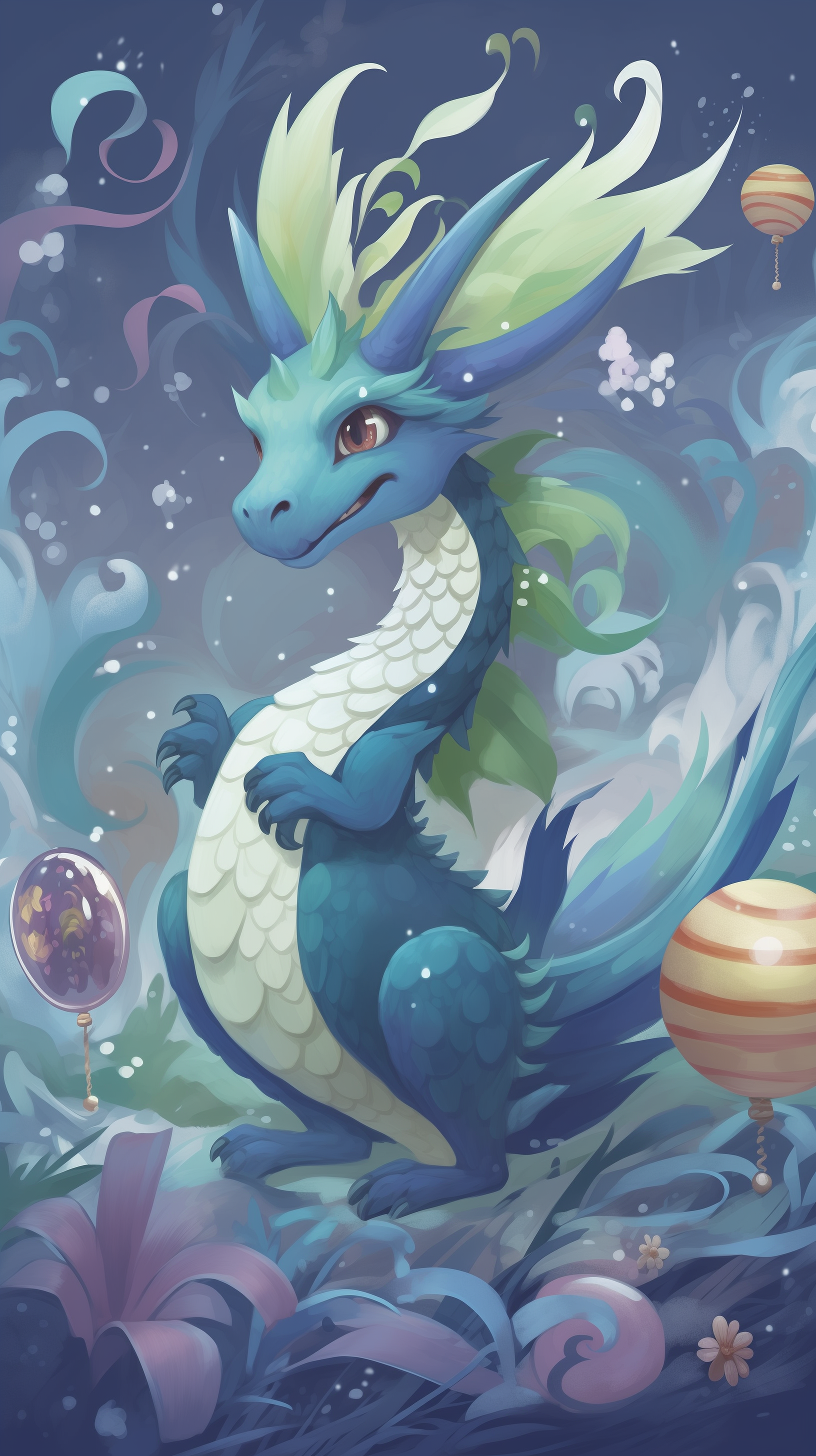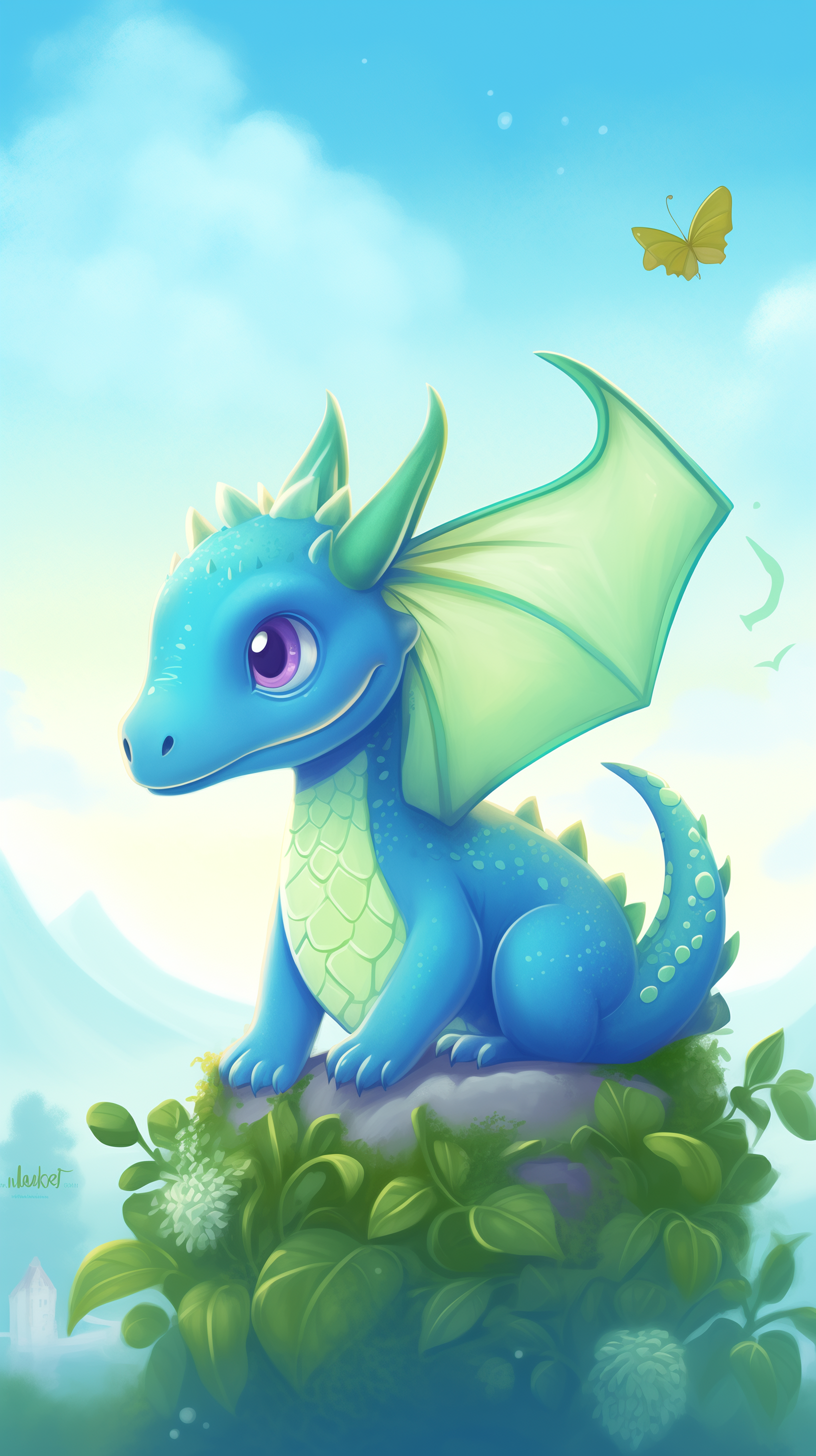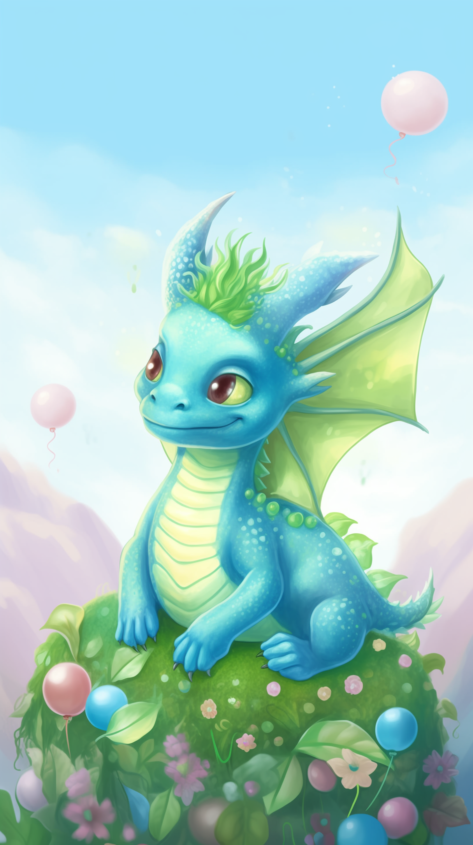 일러스트로 그려진 사랑스러럽고 귀여운 청룡 배경화면 이미지예요.
