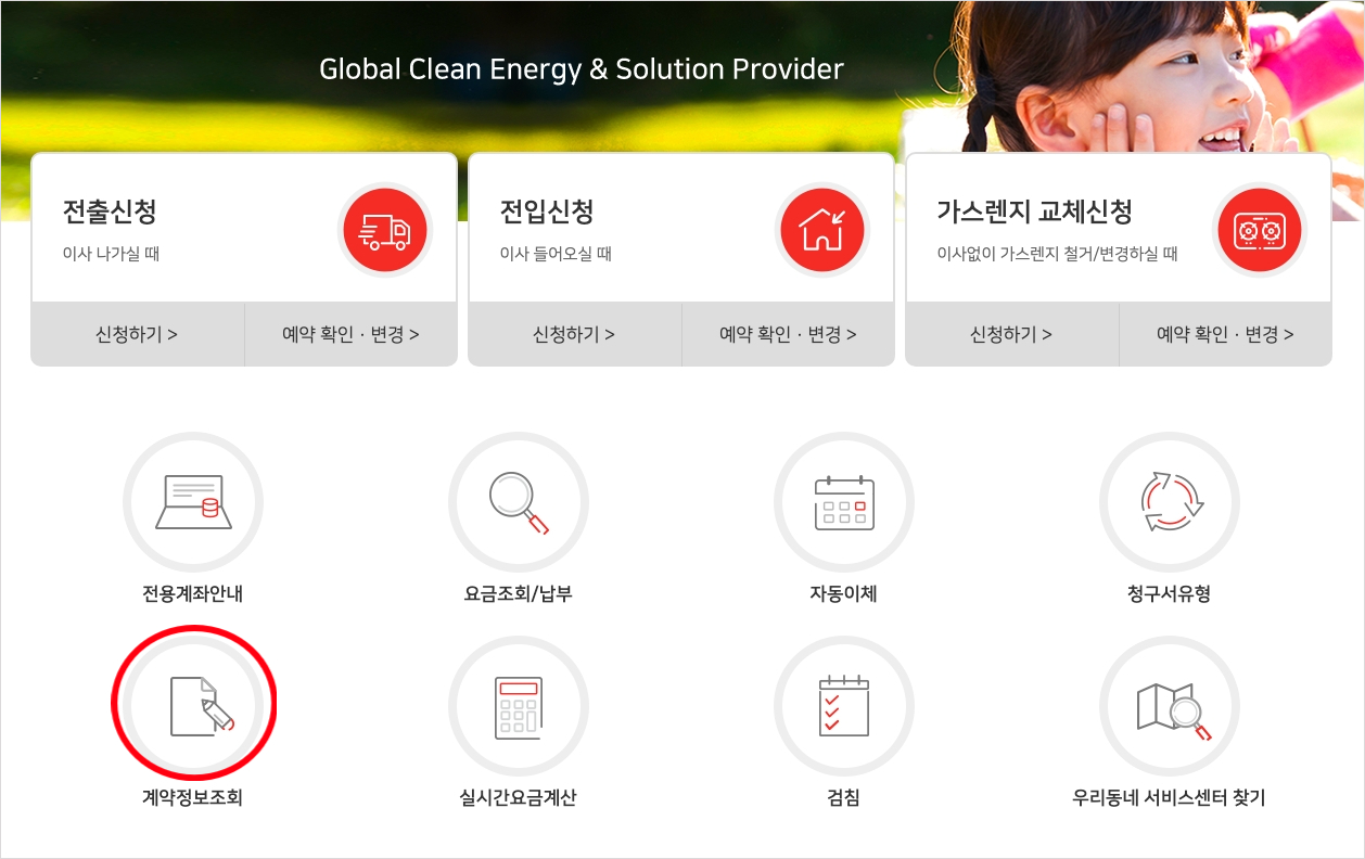 전출, 전입신청, 자동이체, 요금조회/납부, 실시간 요금 계산 등 다양한 서비스가 있어요.