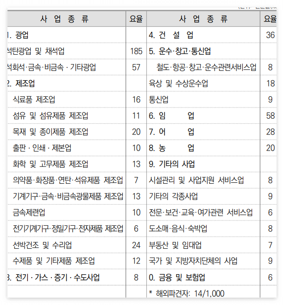 | 1. 광업 | 5.76%~18.56% | 6. 임업 | 5.86% |