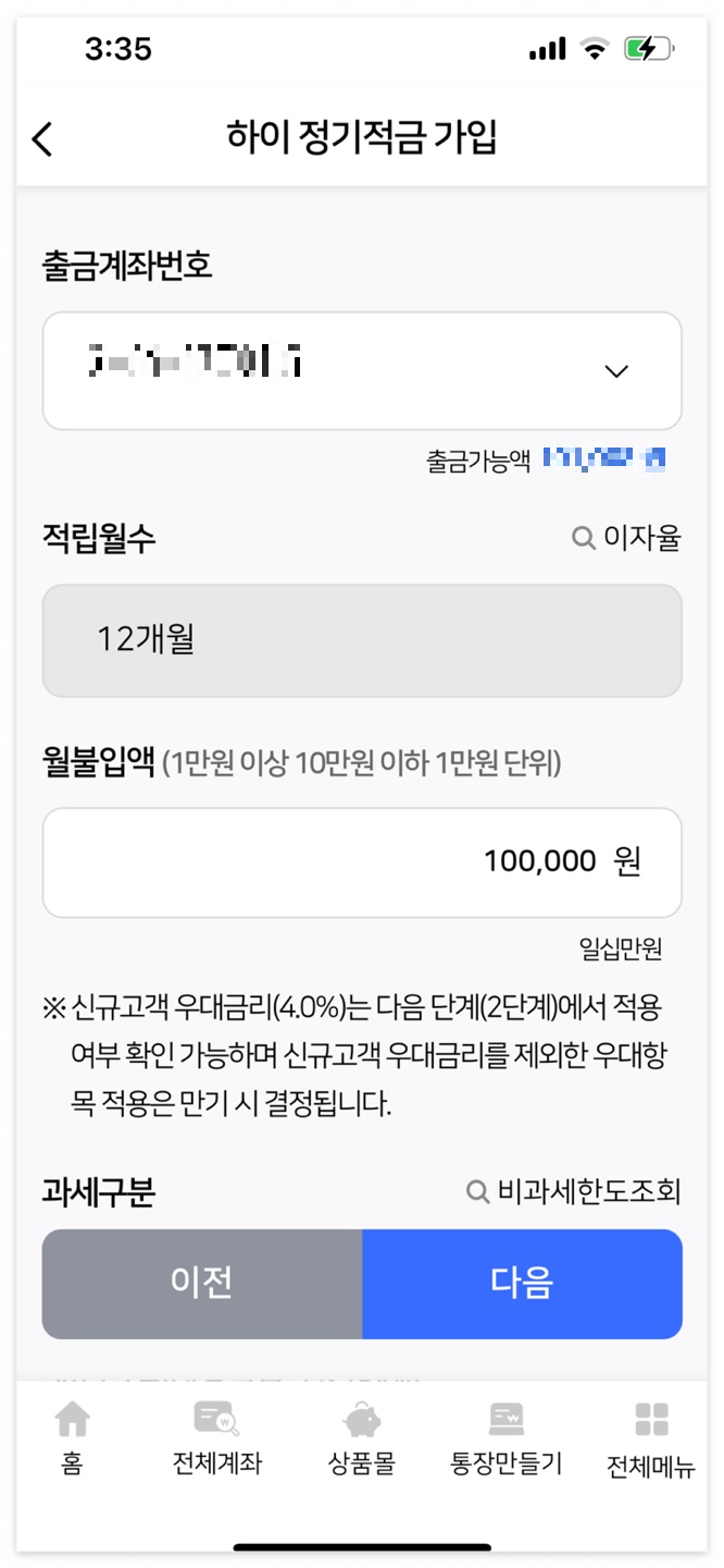 스마트뱅킹 비대면 전용 우리종합금융 하이 정기적금