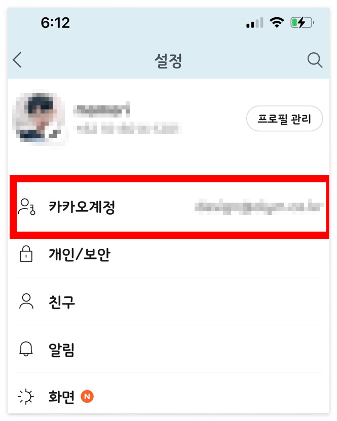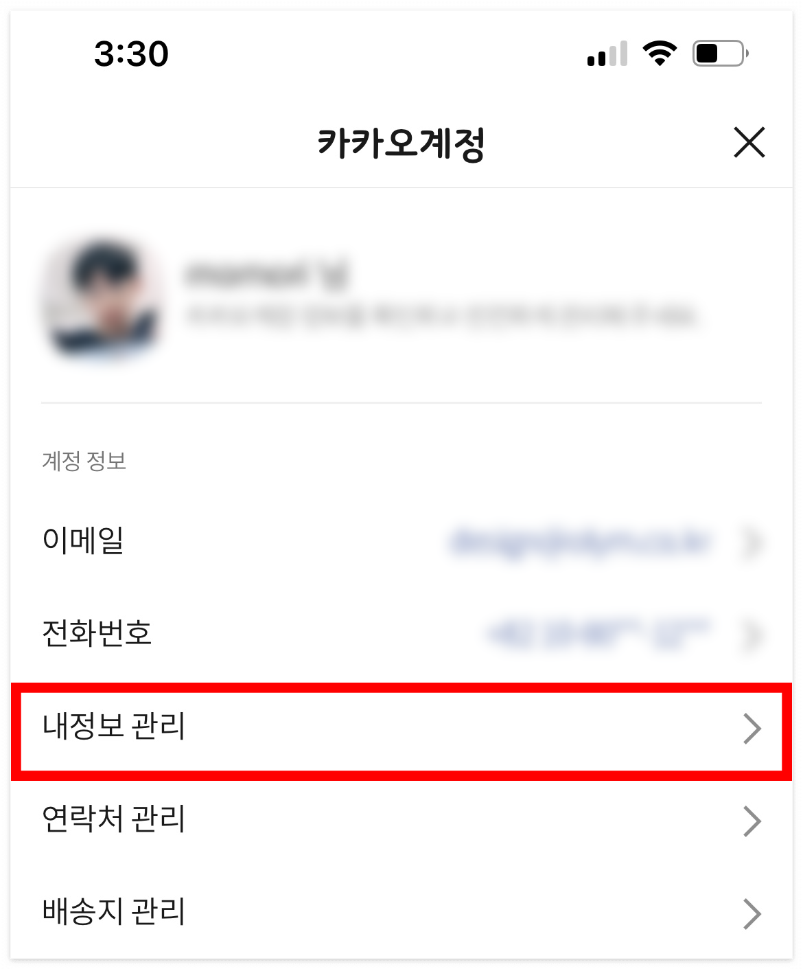 톱니바퀴 > 전체설정 > 카카오 계정 > 내 정보관리 > 생일
