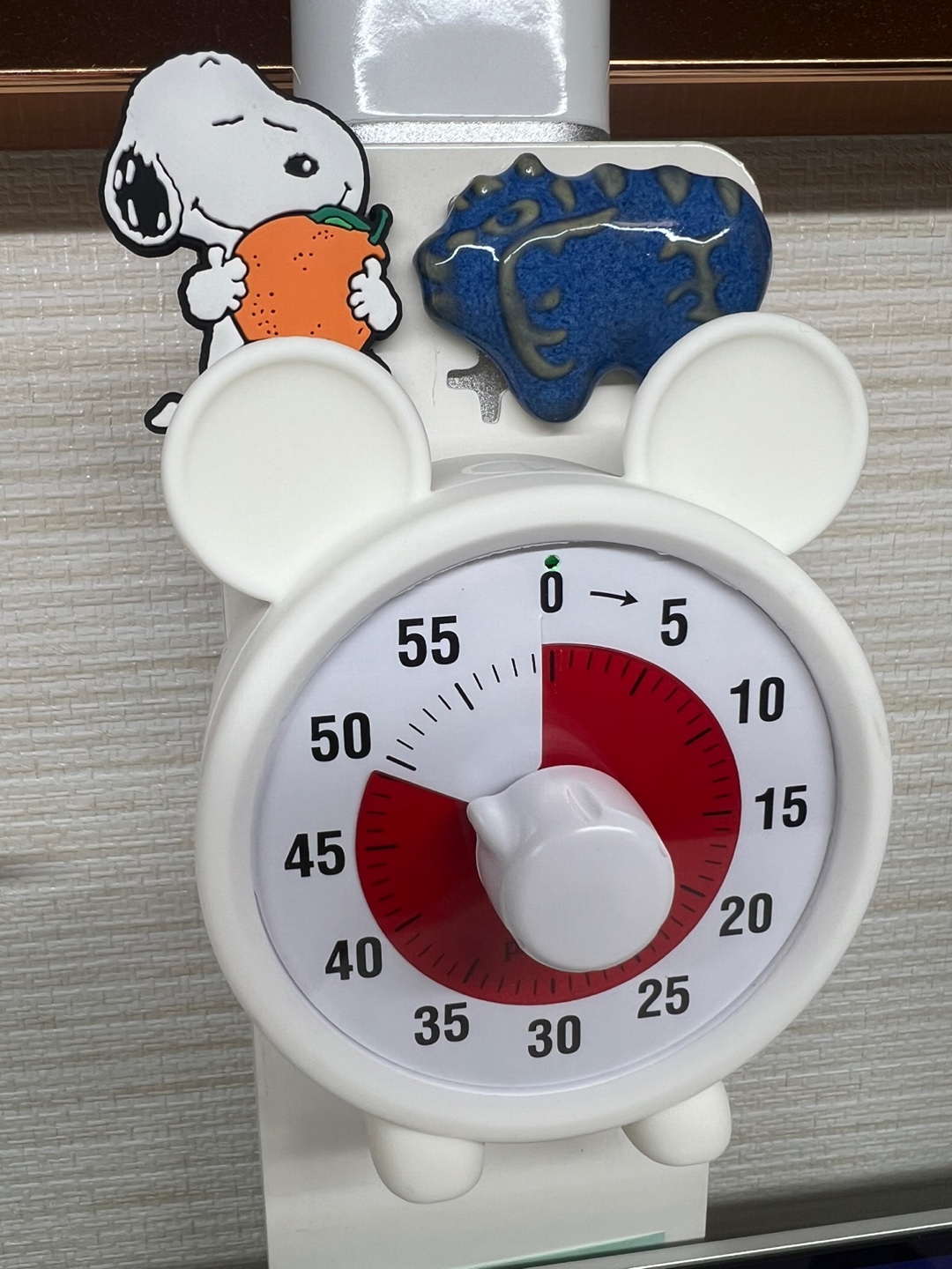 그 동안 내 책상앞에서 나를 응원해준 스누피와 백제 무령왕릉 진묘수, 타이머를 기념사진으로 남기고
