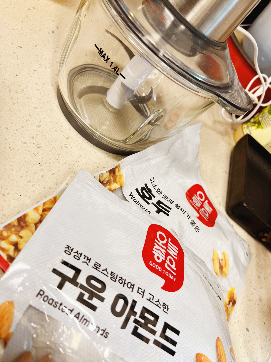 그래서 호두와 아몬드를 함께 갈았어요.