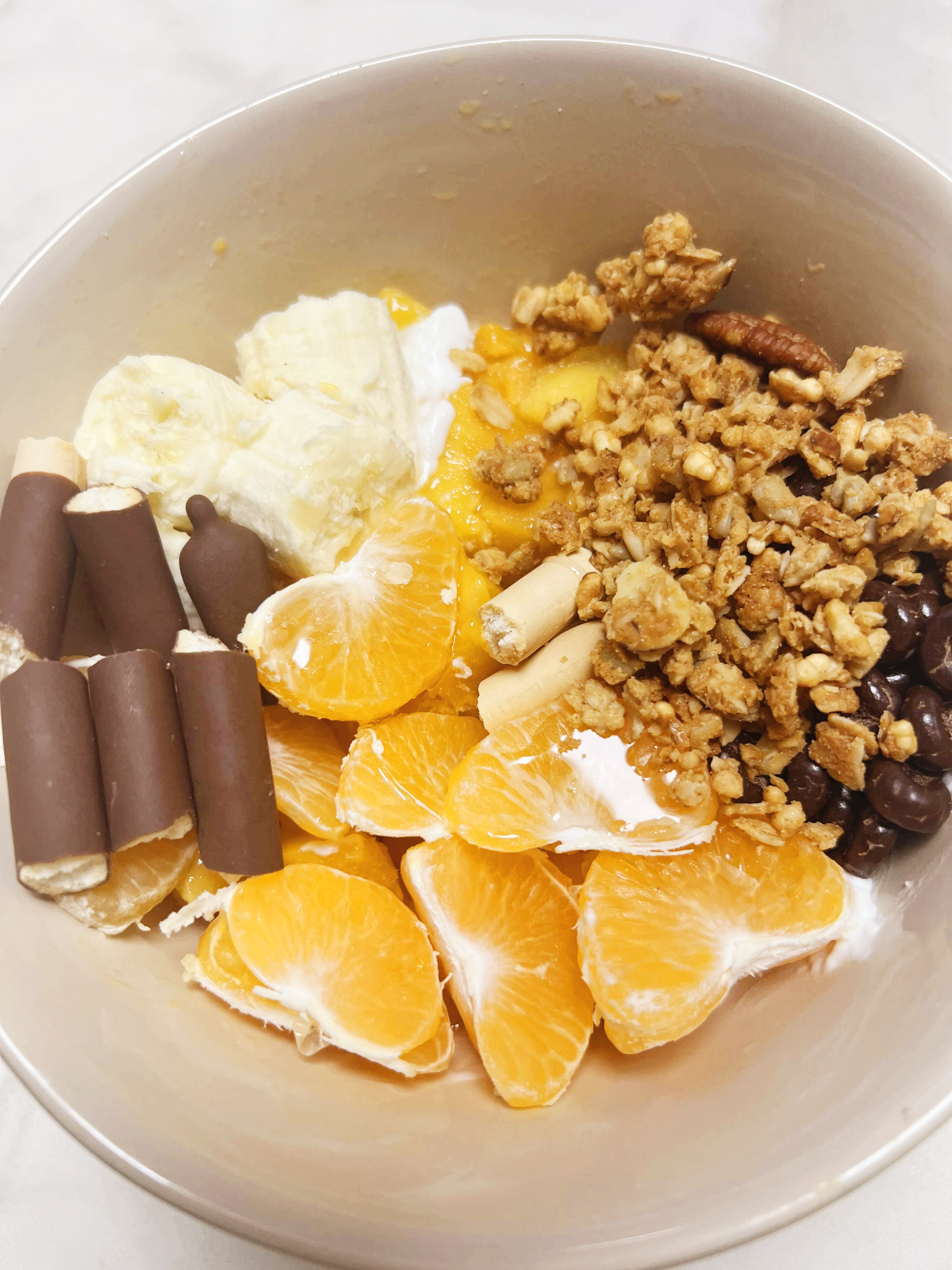 또 식감이 있는 토핑으로 그레놀라, 초콜릿, 오레오, 견과류, 빼빼로, 누텔라 등 좋아하는 것들을 올려요~