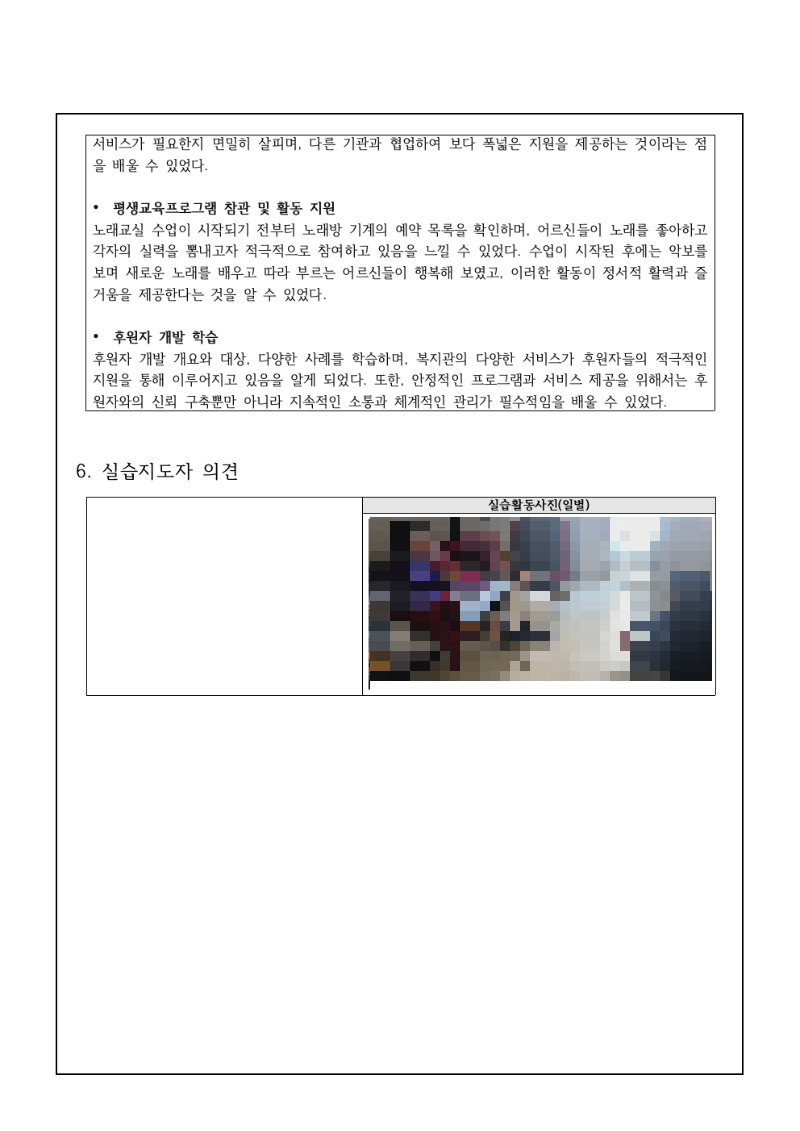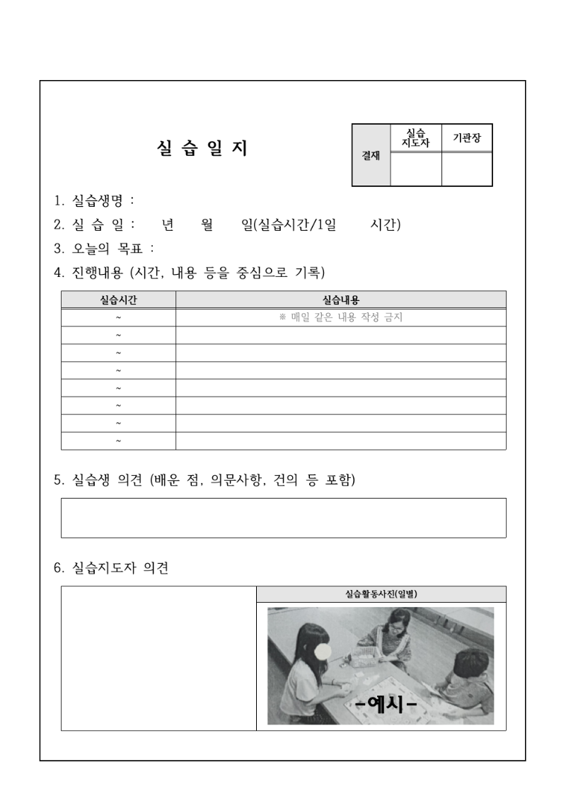목표 → 시간·내용 → 실습생 의견 → 사진 순서로 정리하면