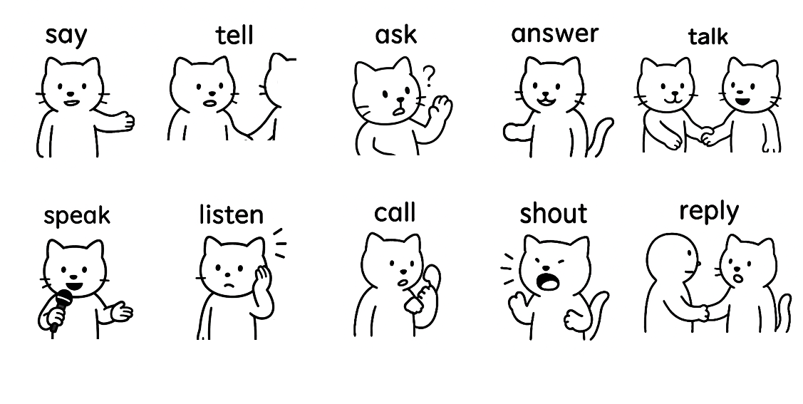 대화 속에서 자주 쓰이는 말하다, 듣다, 물어보다, 대답하다 같은 동사들,