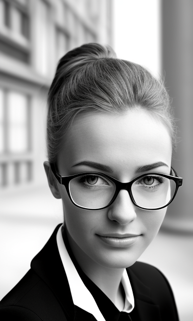 Prompt: 강력한 유럽 도시 풍경이나 매끈한 유럽 기업 환경에 맞서 자신감 있고 단호한 포즈를 취하는 20세의 아름다운 유럽 여성의 이미지를 만듭니다. 유럽 비즈니스 복장, 유럽 전문 액세서리 또는 유럽 건축 기호와 같은 요소를 통합하여 ENTJ의 확고하고 목표 지향적인 성격을 나타냅니다.