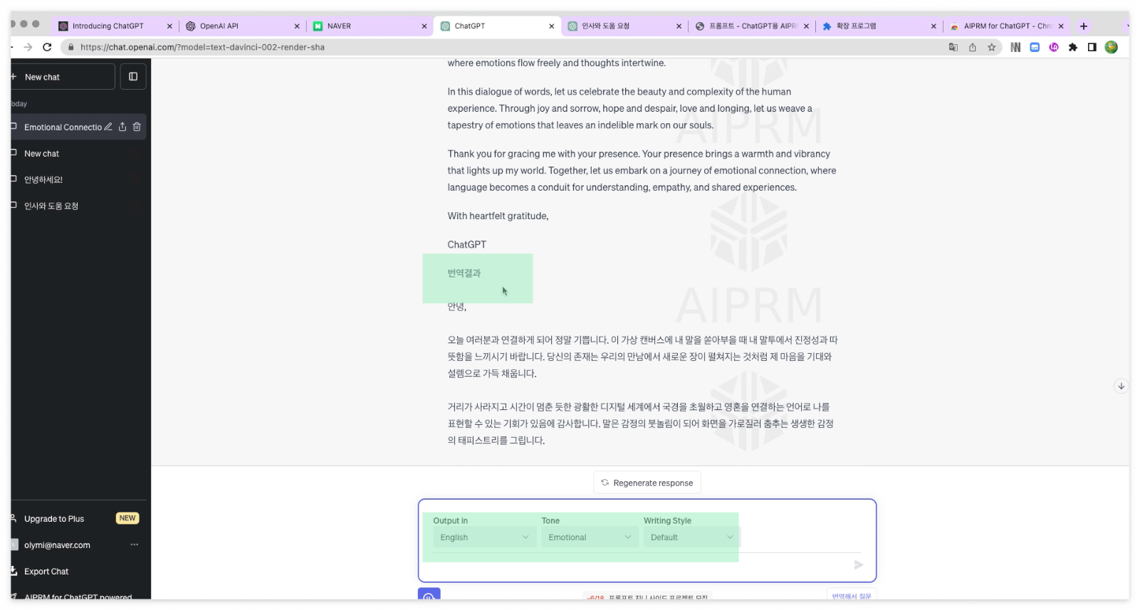 그럼 한글질문을 영어로 번역해 챗GPT에게 질문하고